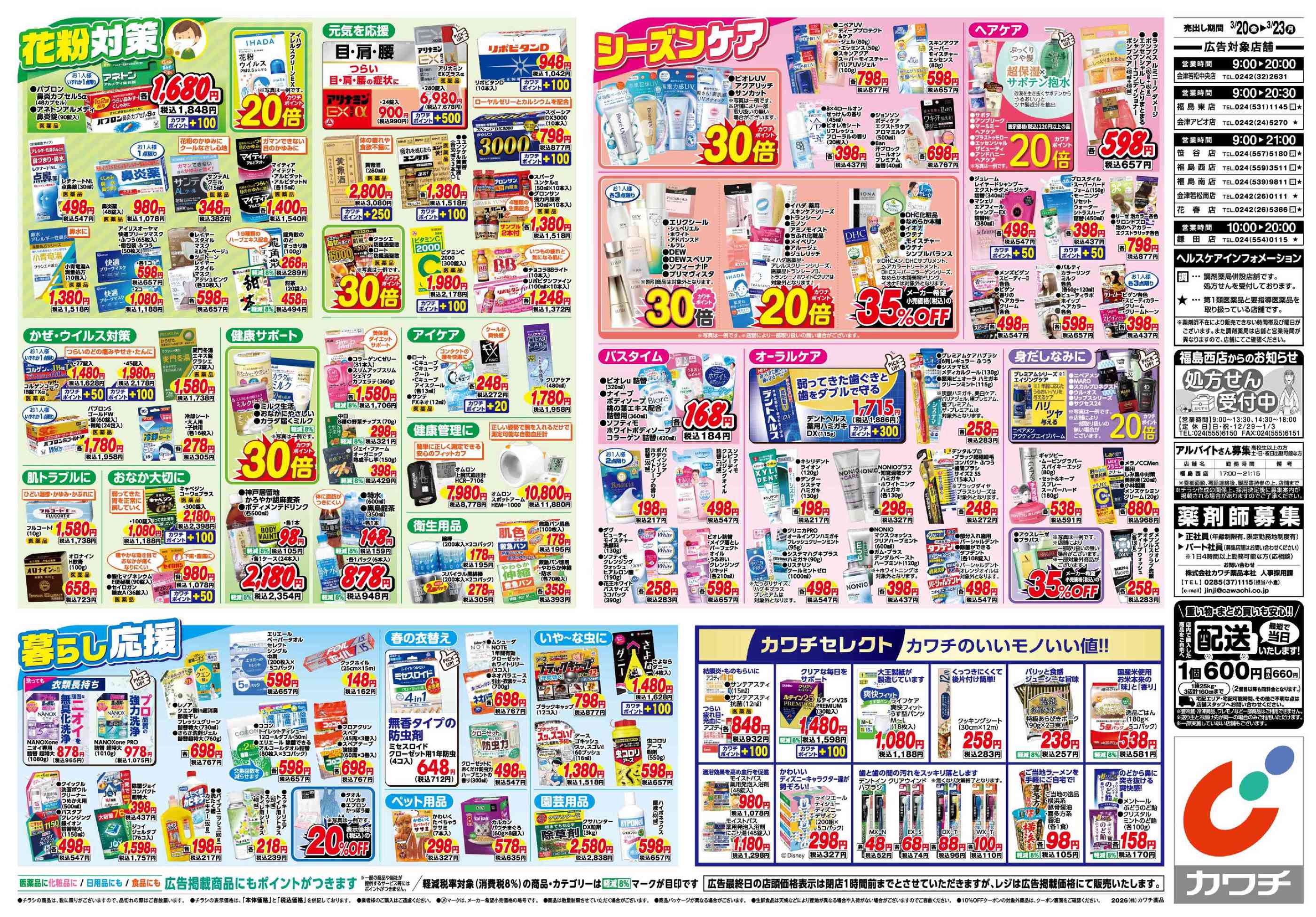 カワチ薬品笹谷店今週のチラシ(2026年3月23日〜3月29日)