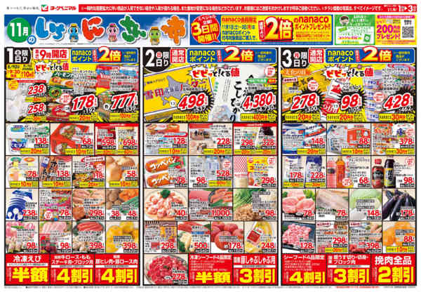 特売やセール情報など最新のチラシを掲載中。(3種類、6枚のチラシを掲載しています)