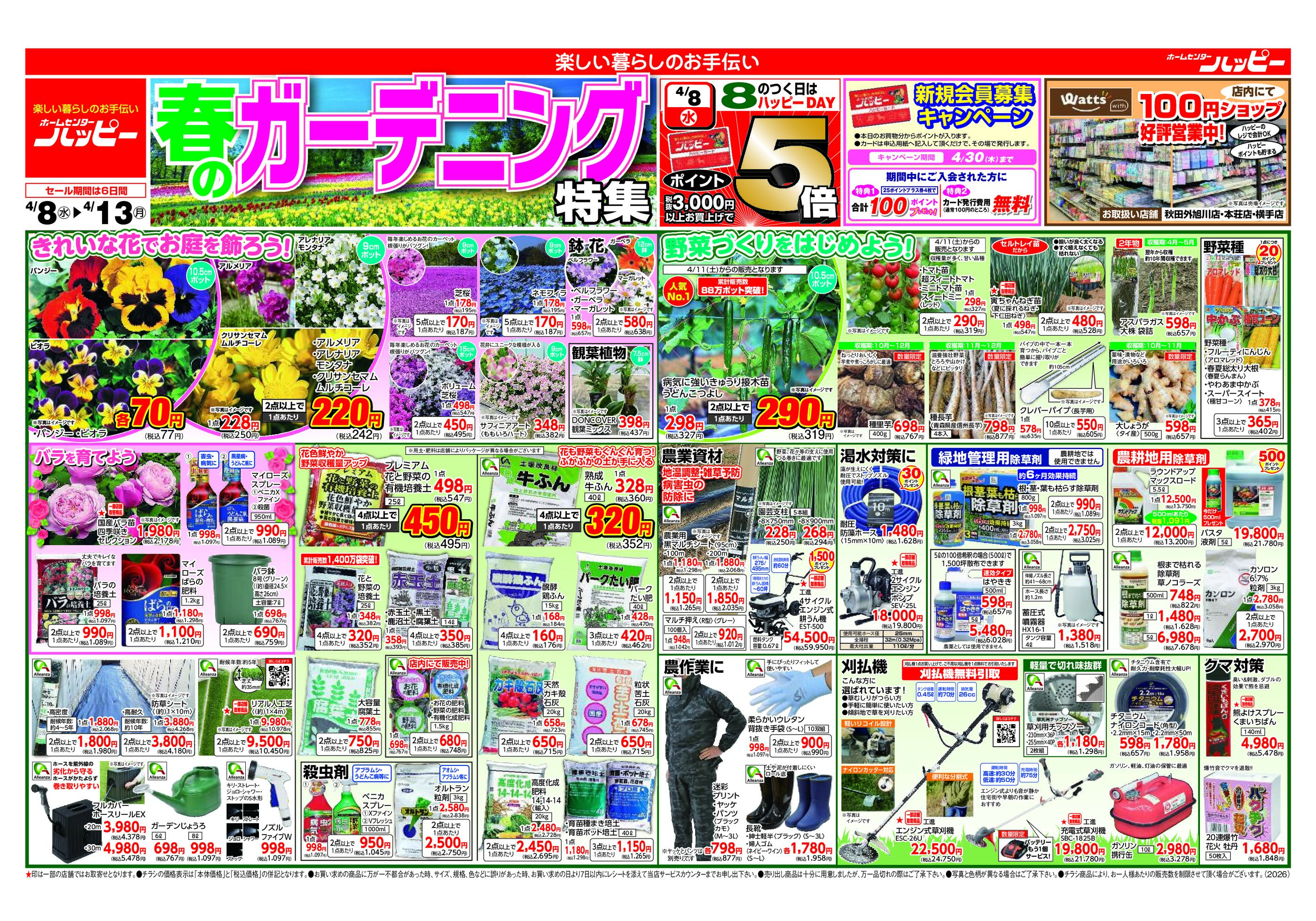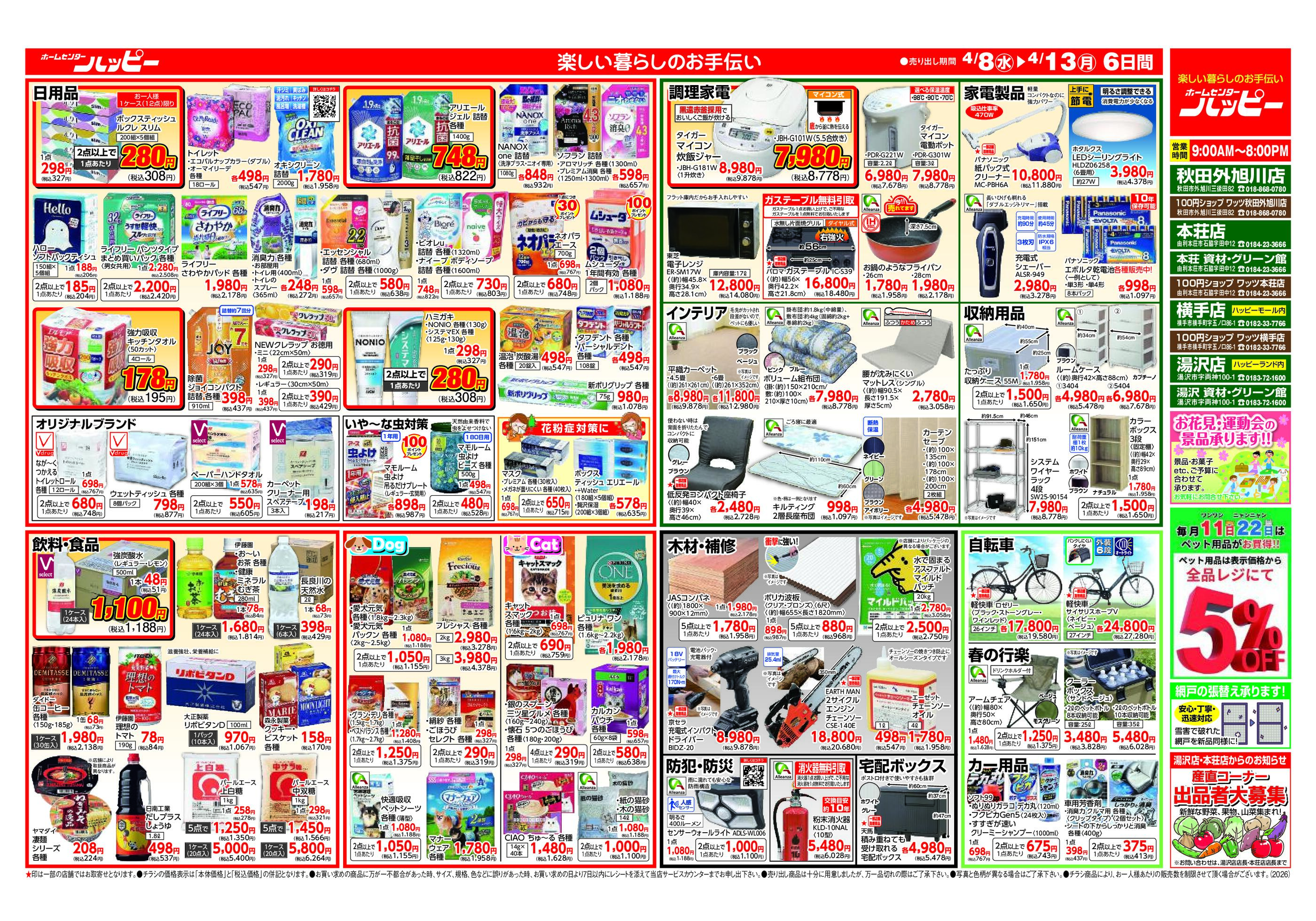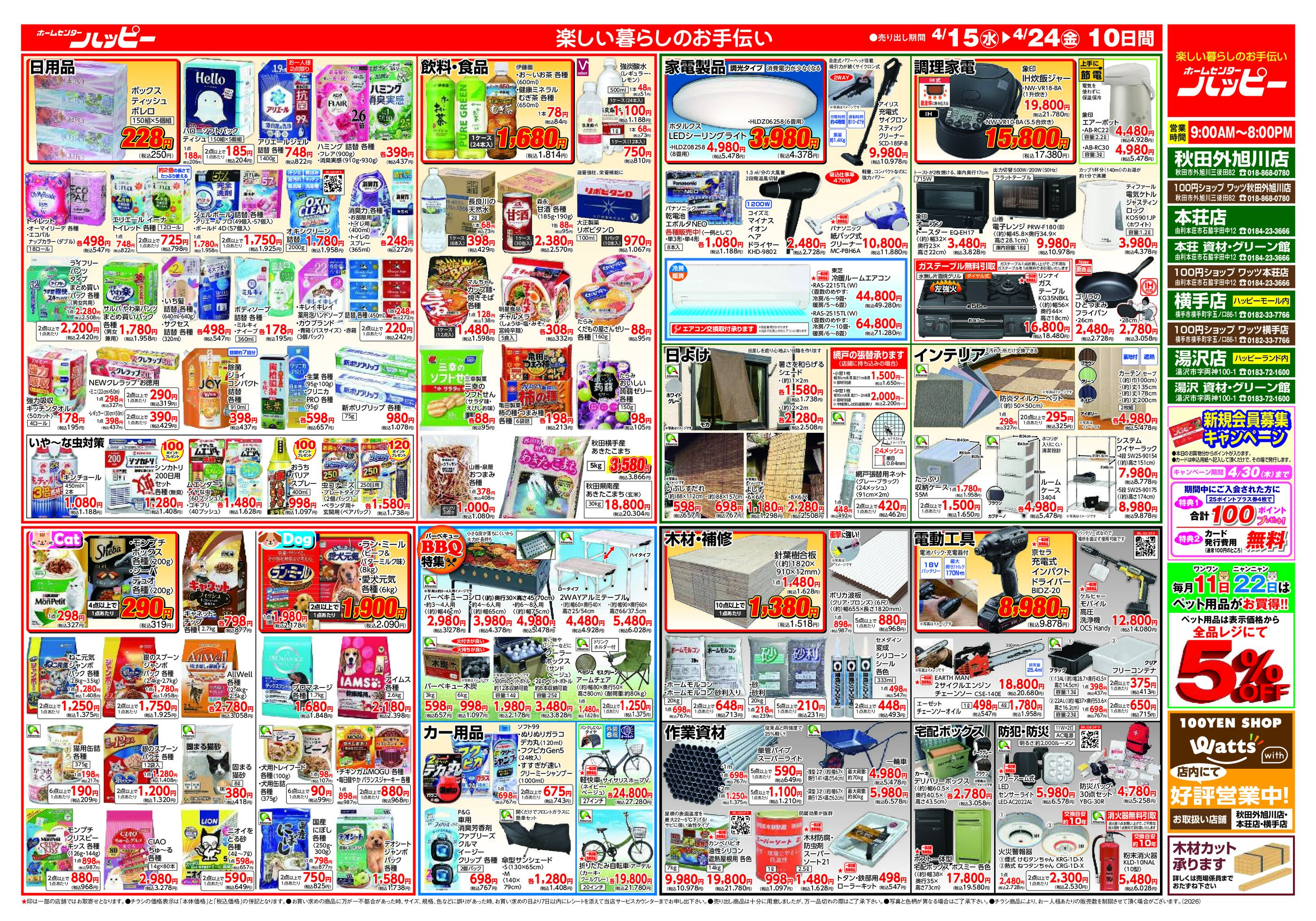 ホームセンターハッピー横手店今週のチラシ(2026年4月13日〜4月19日)