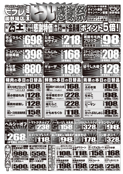 ※「店舗の掲載内容について」チラシガイドに掲載している情報は、独自に調査した内容及びユーザーから頂いた情報を掲載しています。お気づきの点がございましたら「お問い合わせ」よりご連絡ください。また店舗の営業状況、商品に関するお問い合わせは直接店舗事業者にご確認ください。