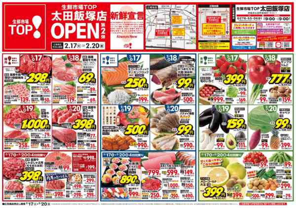 群馬県太田市飯塚町1933-1生鮮市場TOP太田飯塚店1階[2/14open]生鮮市場TOP太田飯塚店