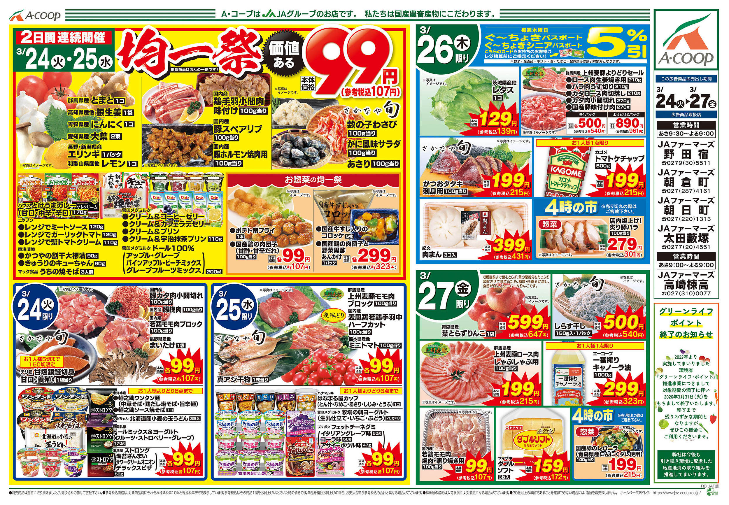 JAファーマーズ野田宿店今週のチラシ(2026年3月23日〜3月29日)