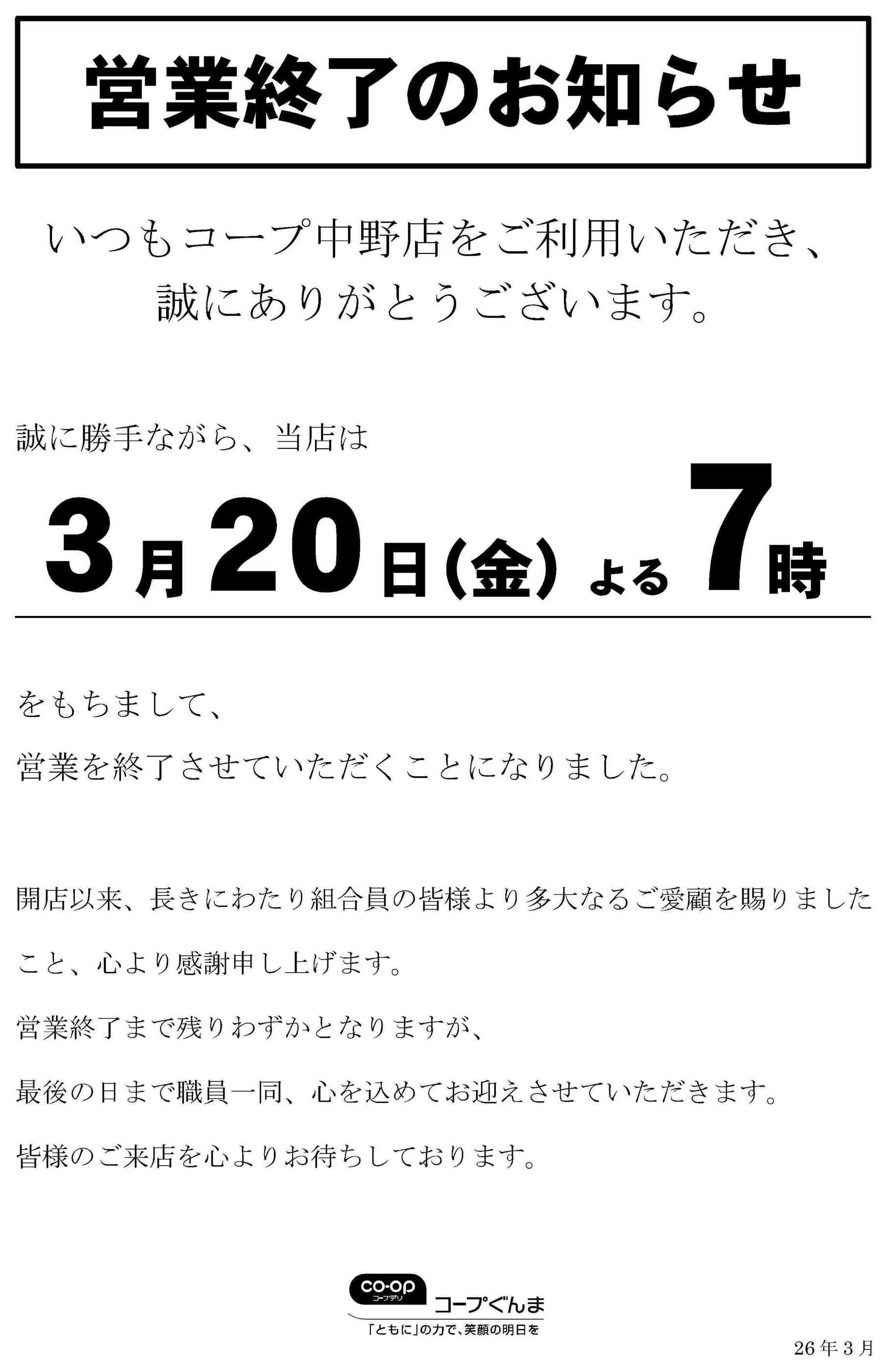コープ中野店2026-03-08更新