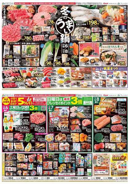 特売やセール情報など最新のチラシを掲載中。(2種類、3枚のチラシを掲載しています)