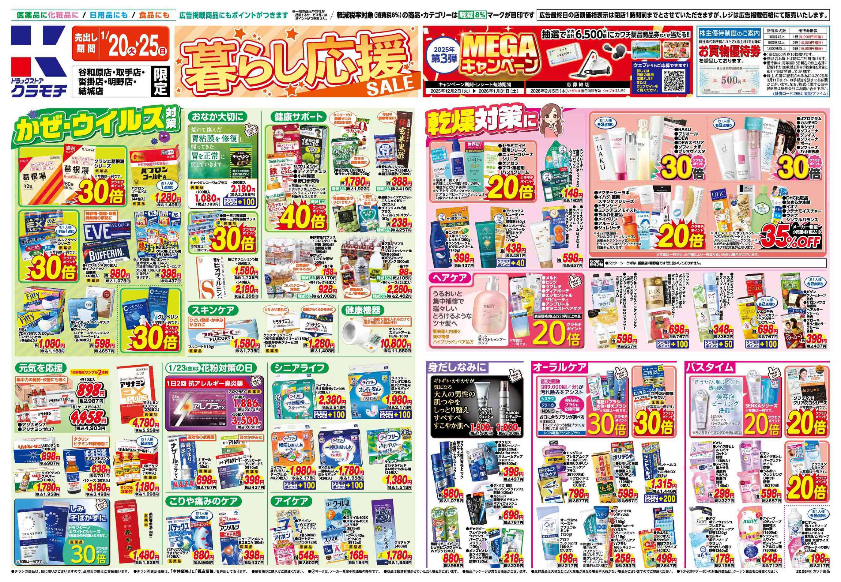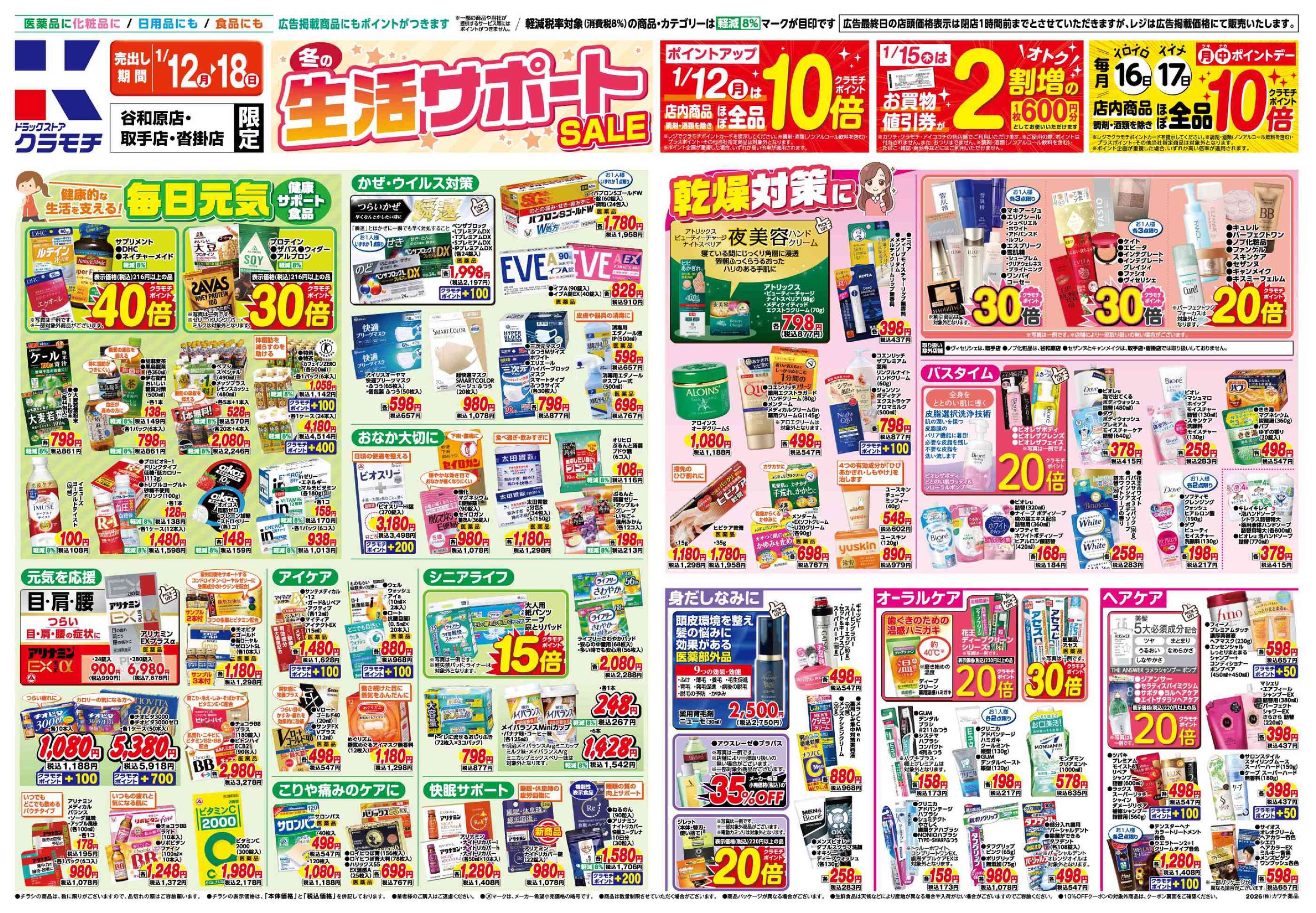 ドラッグストアクラモチ谷和原店今週のチラシ(2026年1月19日〜1月25日)