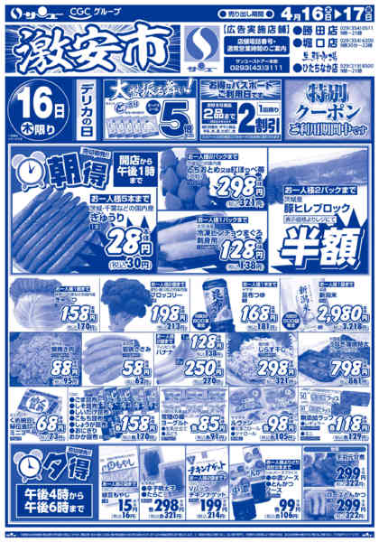 特売やセール情報など最新のチラシを掲載中。(1種類、2枚のチラシを掲載しています)