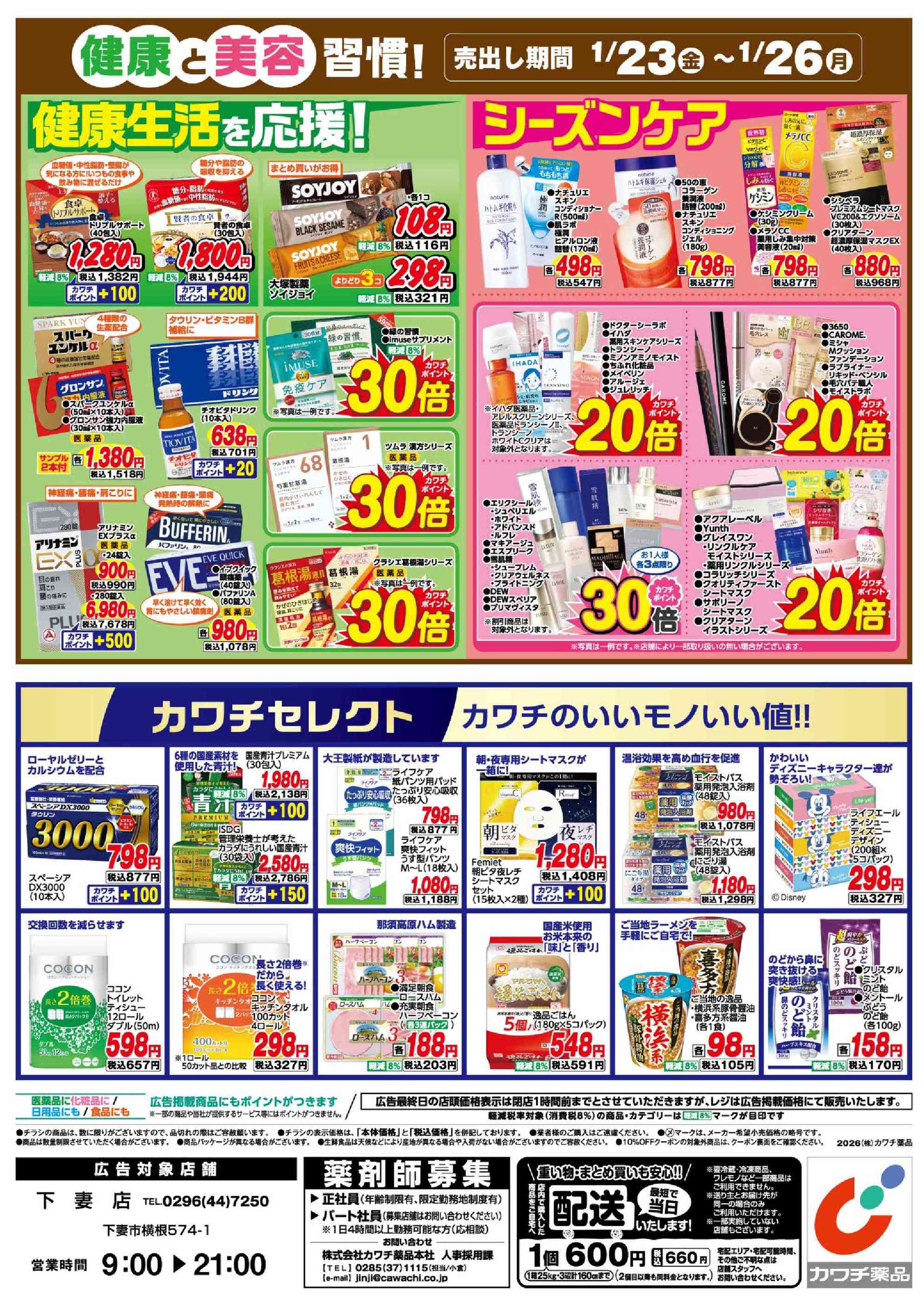 カワチ薬品下妻店今週のチラシ(2026年1月26日〜2月1日)