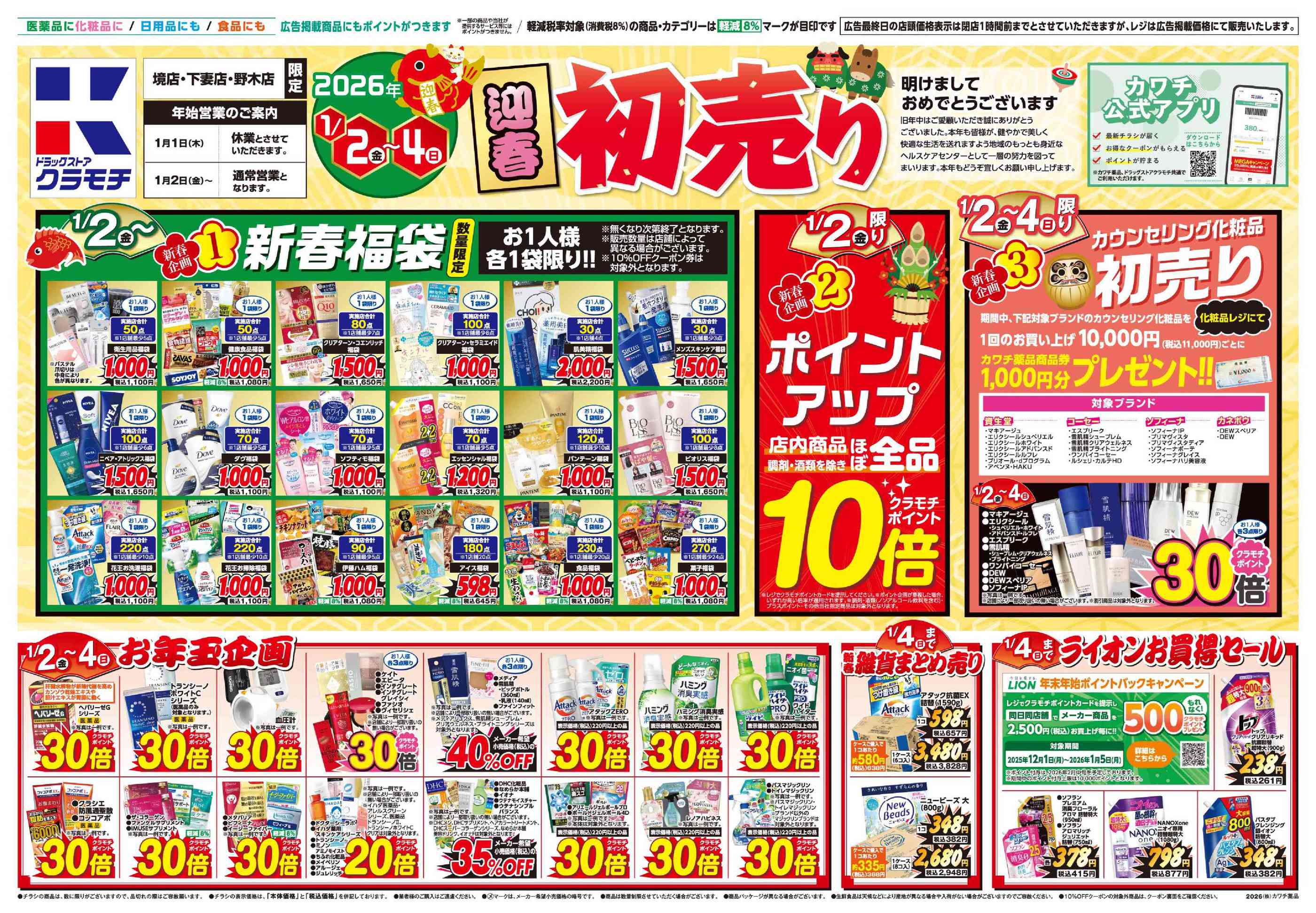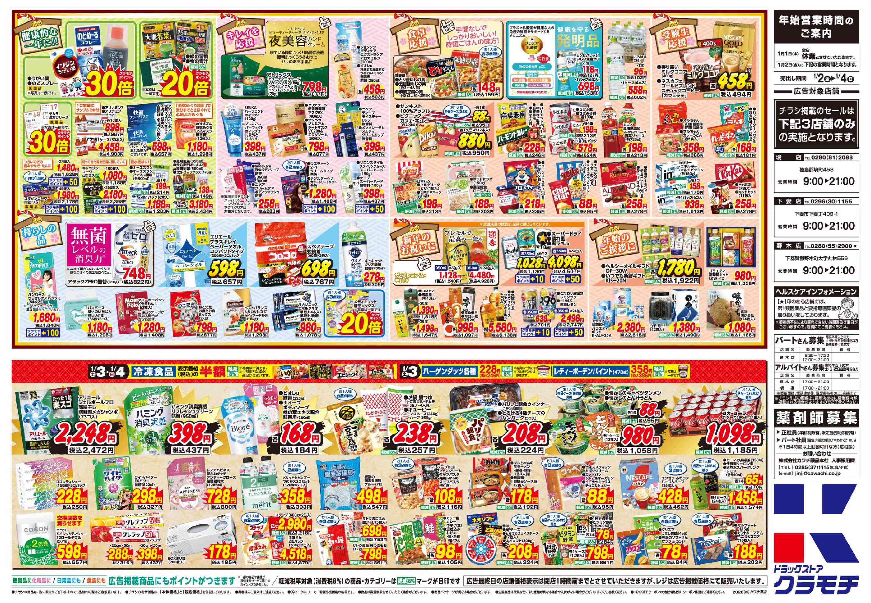 ドラッグストアクラモチ下妻店今週のチラシ(2026年1月5日〜1月11日)