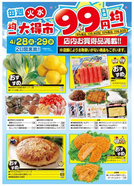 ※「店舗の掲載内容について」チラシガイドに掲載している情報は、独自に調査した内容及びユーザーから頂いた情報を掲載しています。お気づきの点がございましたら「お問い合わせ」よりご連絡ください。また店舗の営業状況、商品に関するお問い合わせは直接店舗事業者にご確認ください。