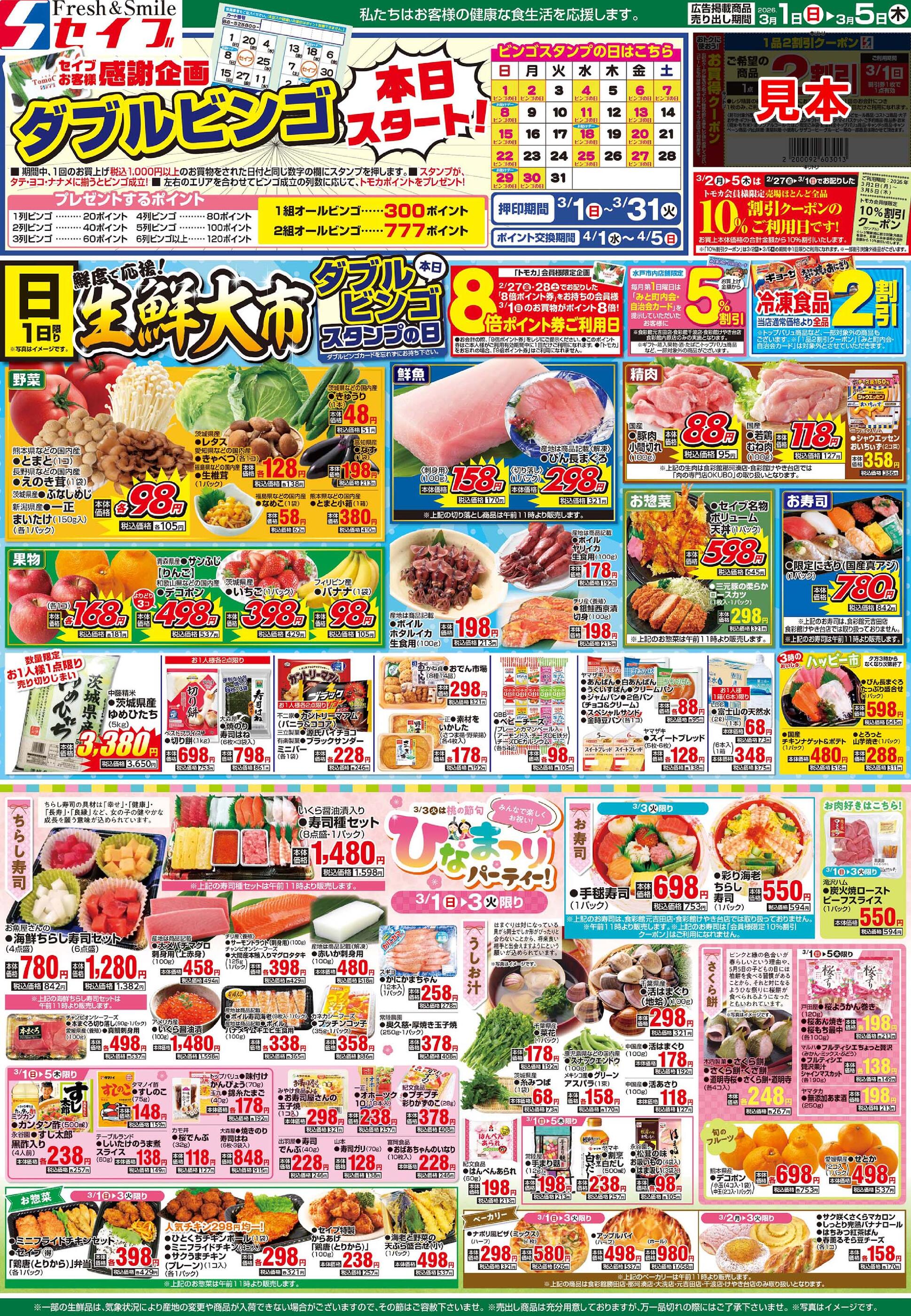 セイブ食彩館けやき台店今週のチラシ(2026年3月9日〜3月15日)