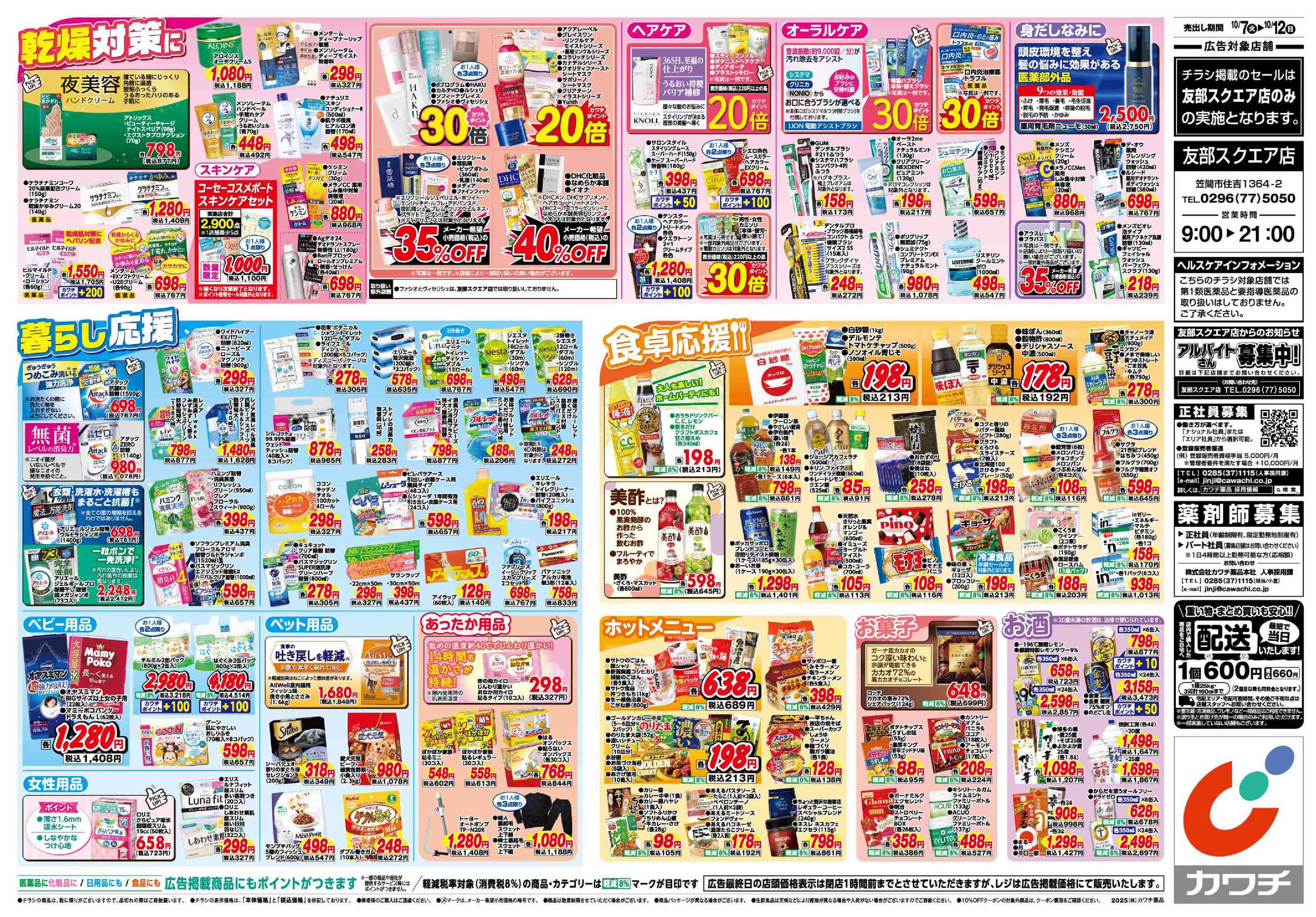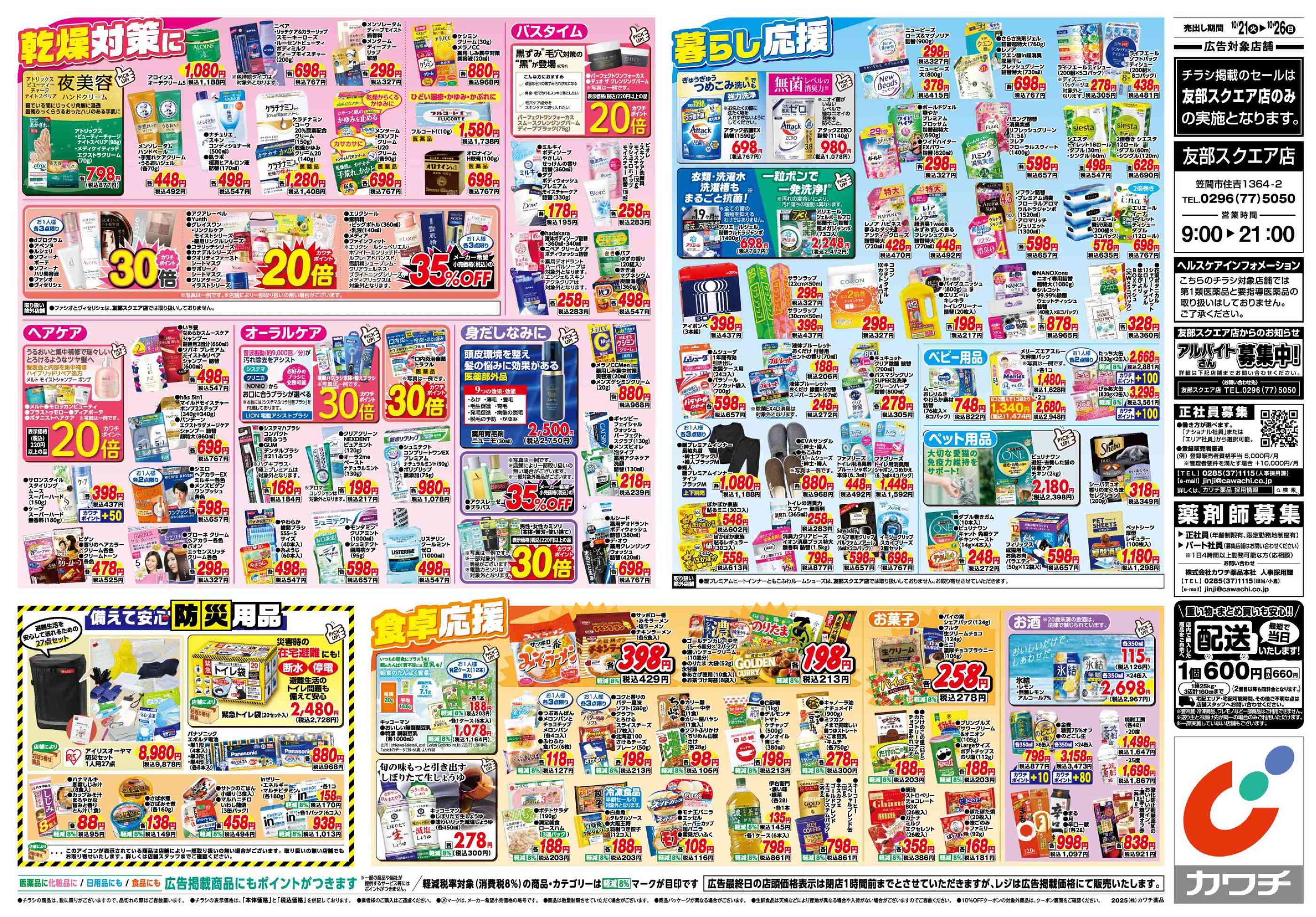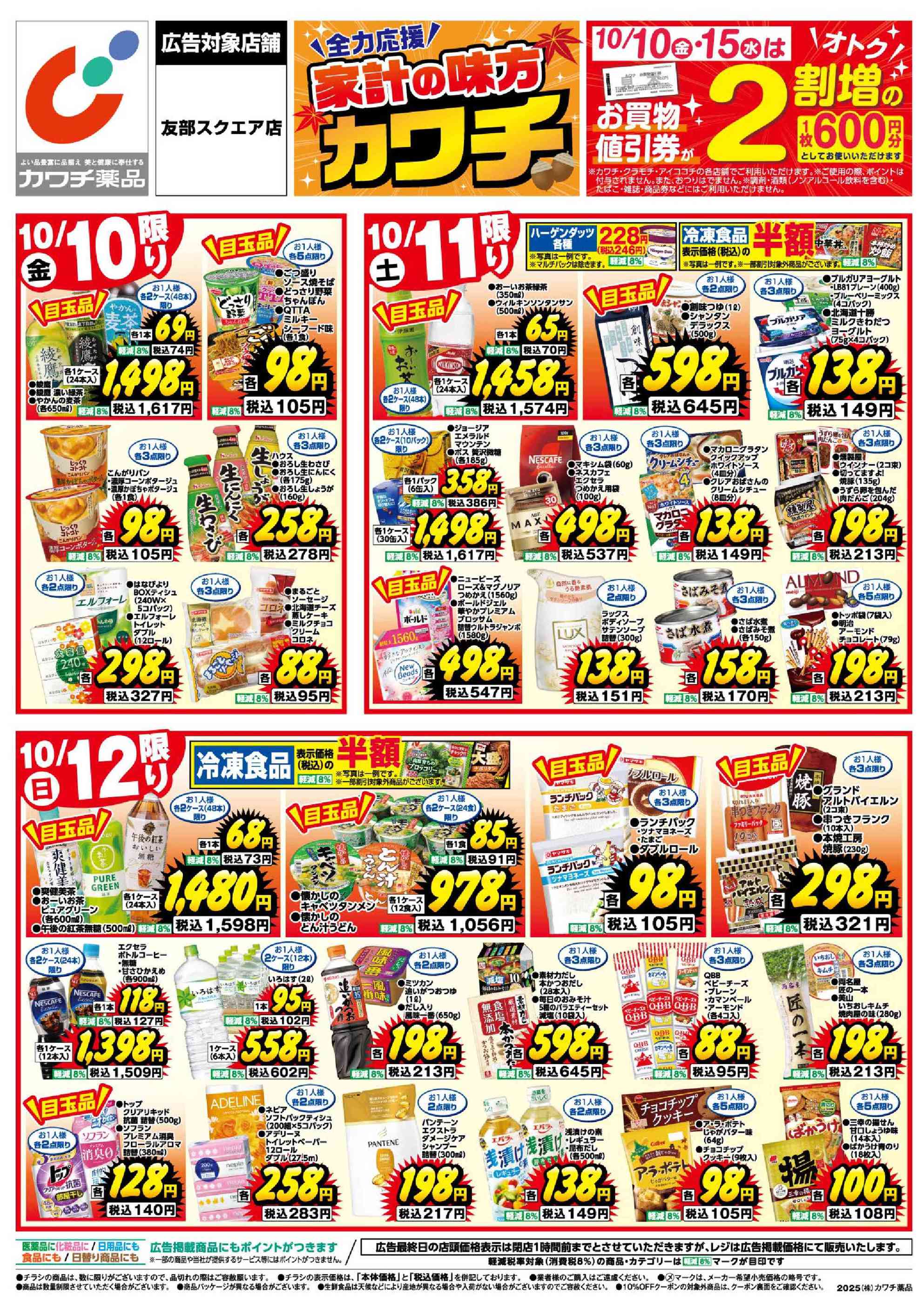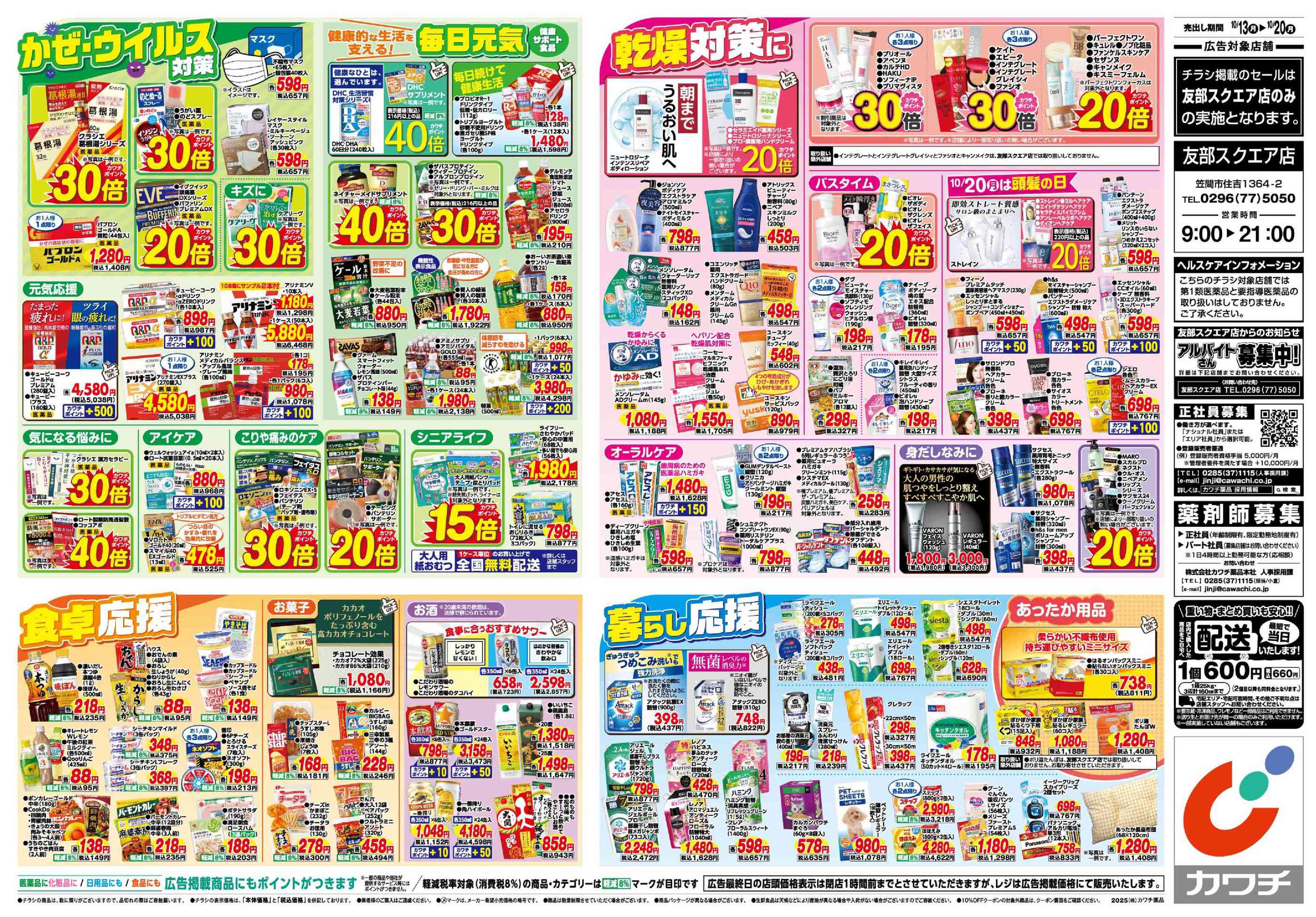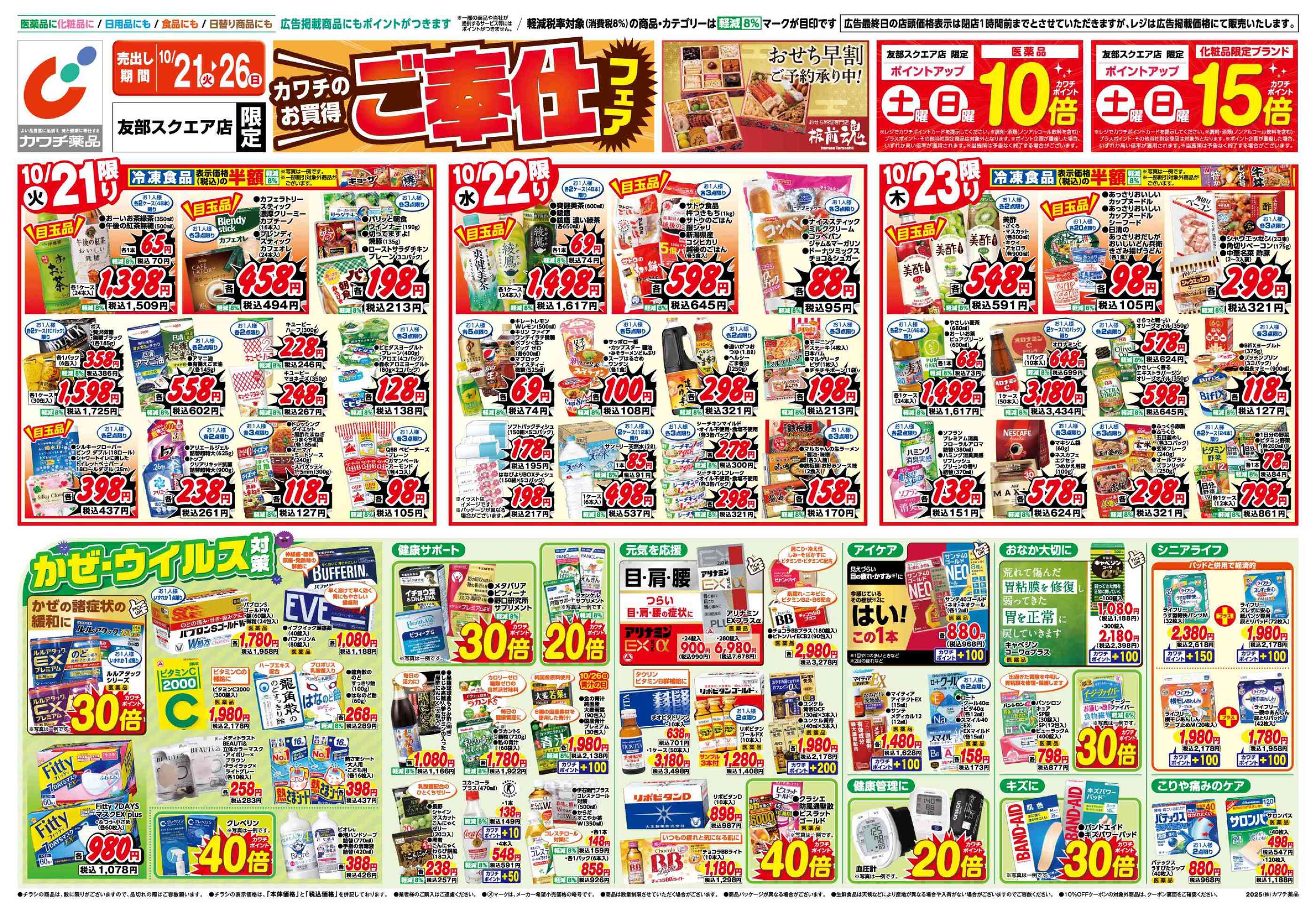 カワチ薬品友部スクエア店今週のチラシ(2025年10月20日〜10月26日)