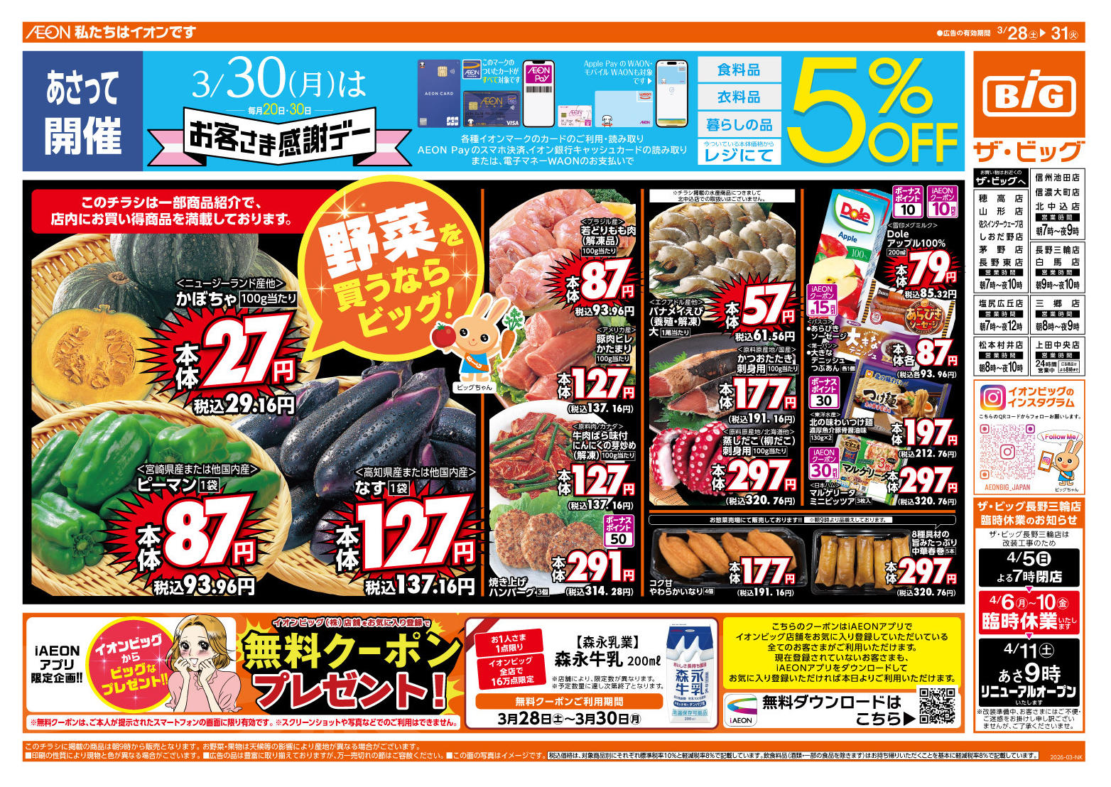 ザ・ビッグ北中込店今週のチラシ(2026年3月23日〜3月29日)