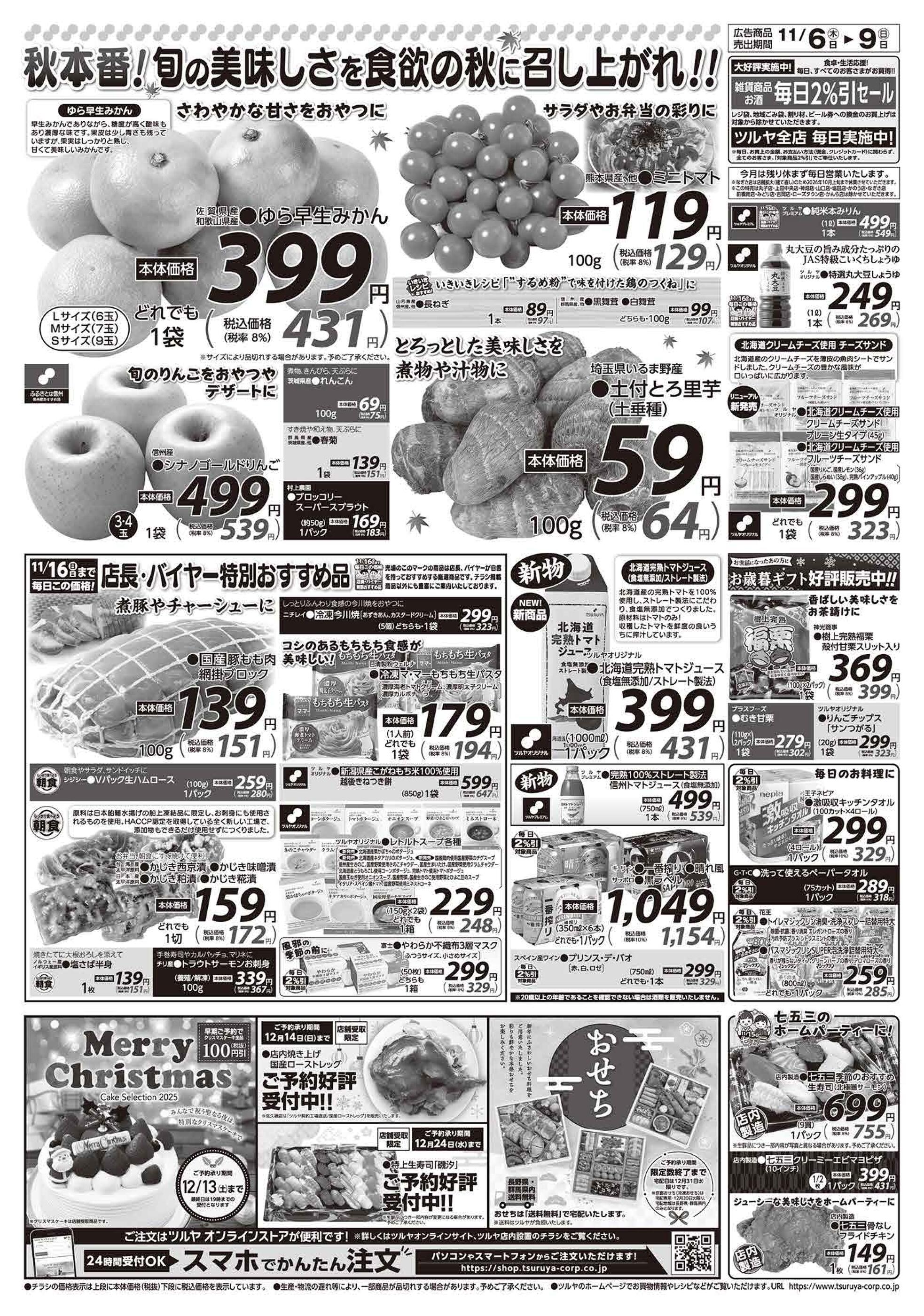 ツルヤ野沢店今週のチラシ(2025年11月3日〜11月9日)