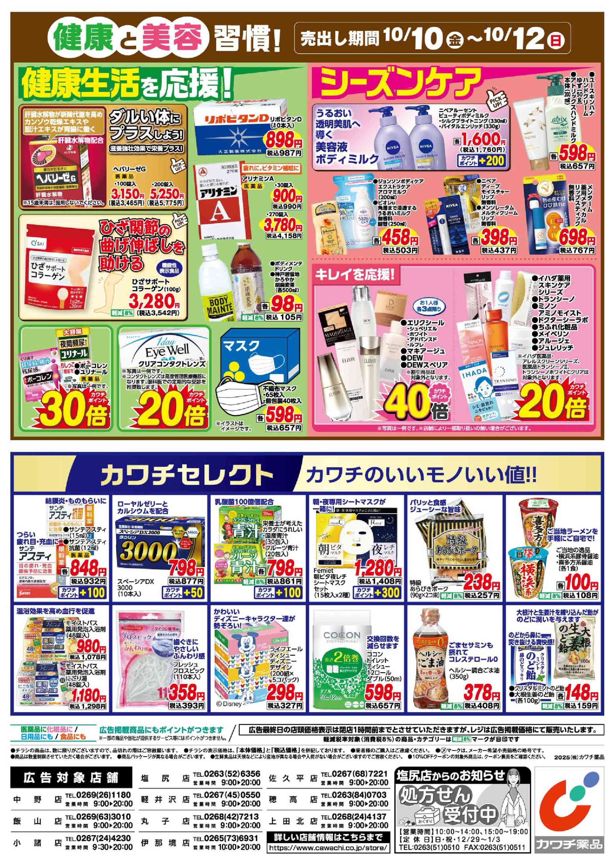カワチ薬品小諸店今週のチラシ(2025年10月13日〜10月19日)