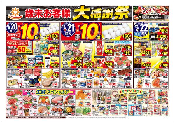 特売やセール情報など最新のチラシを掲載中。(2種類、5枚のチラシを掲載しています)
