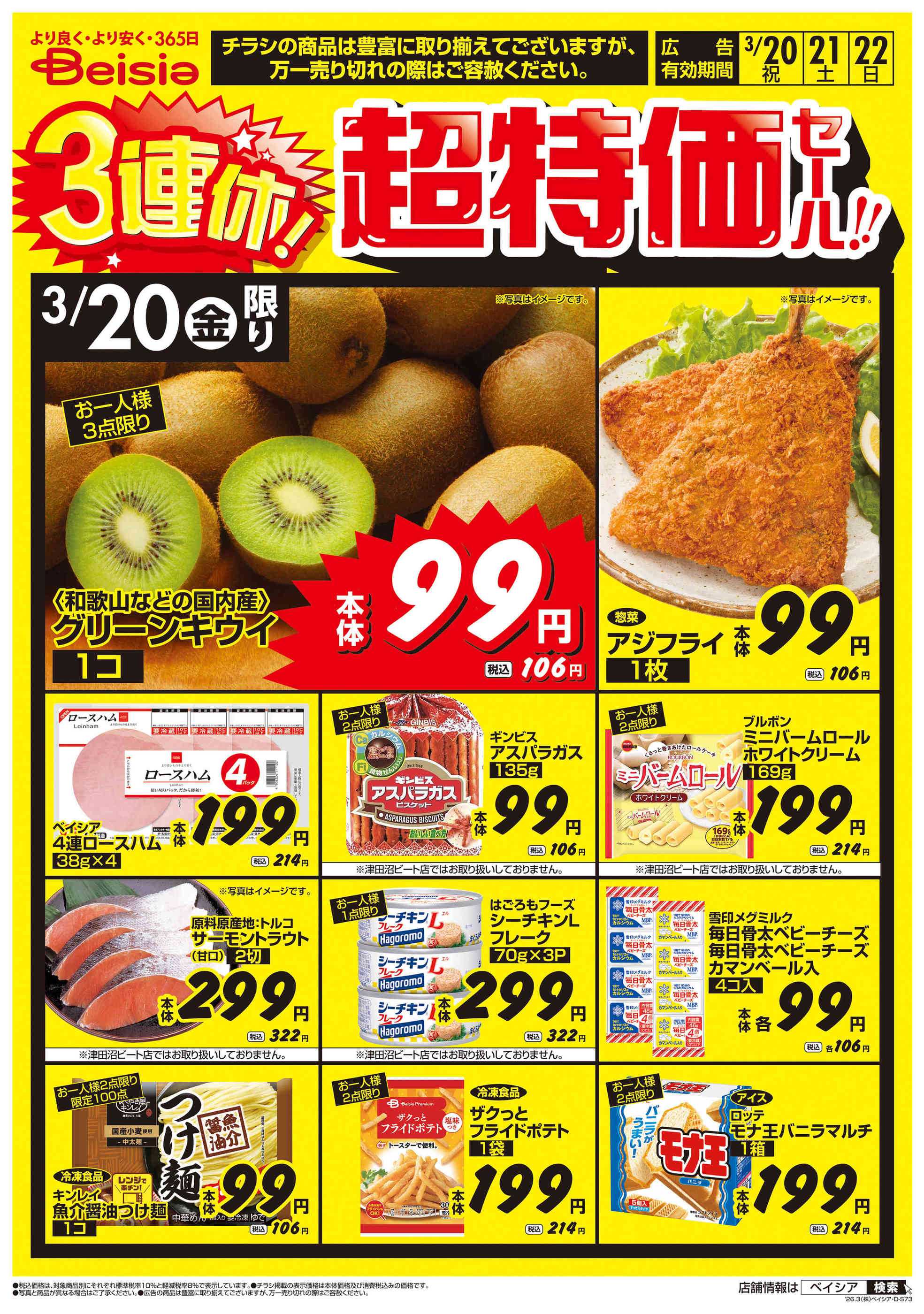 ベイシアフードセンター吉田店今週のチラシ(2026年3月23日〜3月29日)