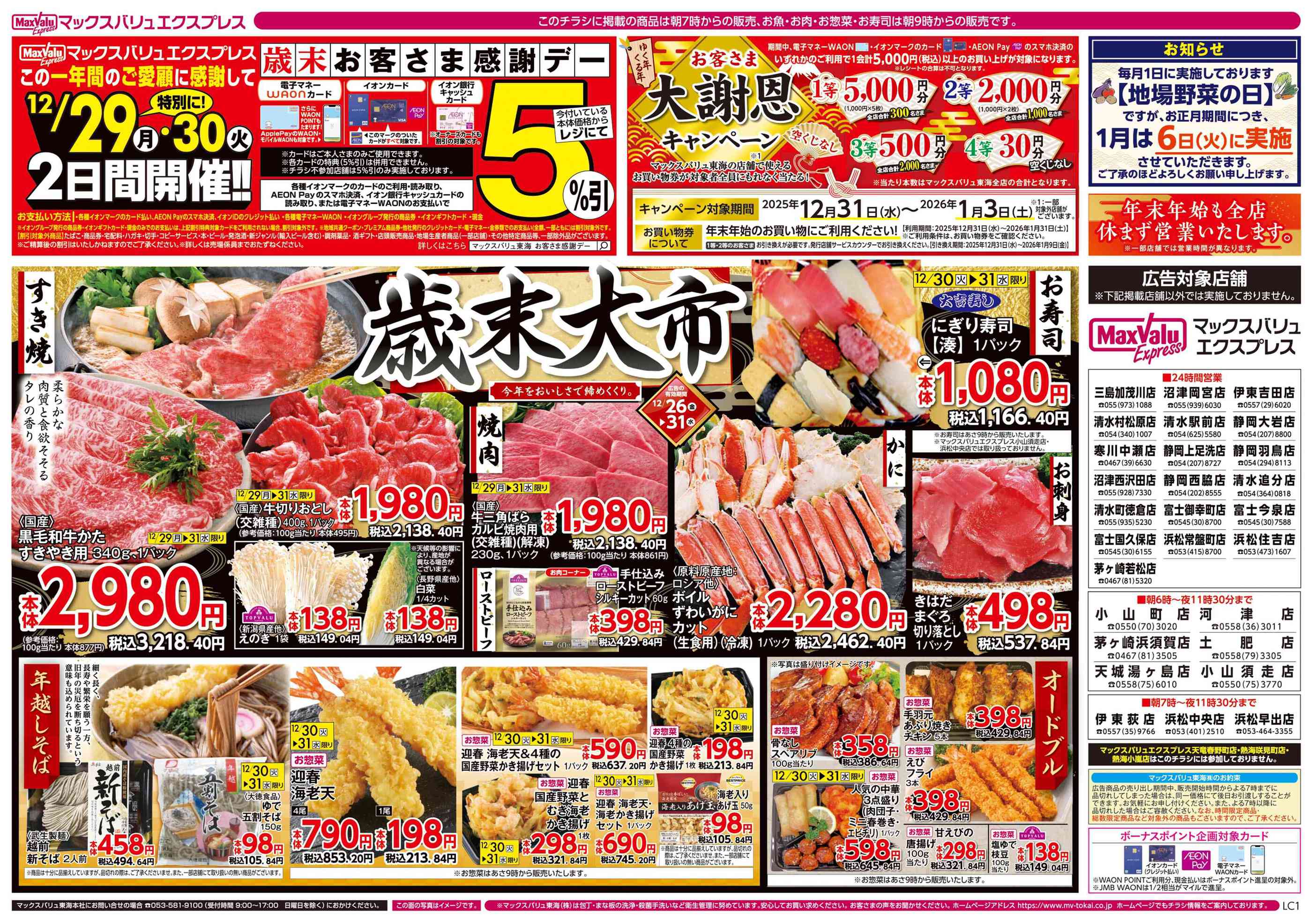 マックスバリュエクスプレス小山須走店今週のチラシ(2025年12月22日〜12月28日)
