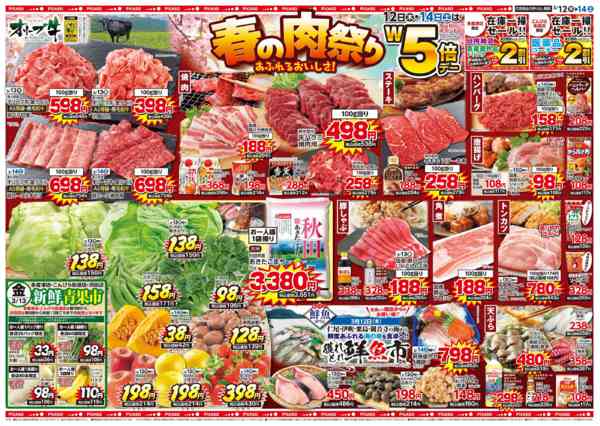 特売やセール情報など最新のチラシを掲載中。(3種類、5枚のチラシを掲載しています)