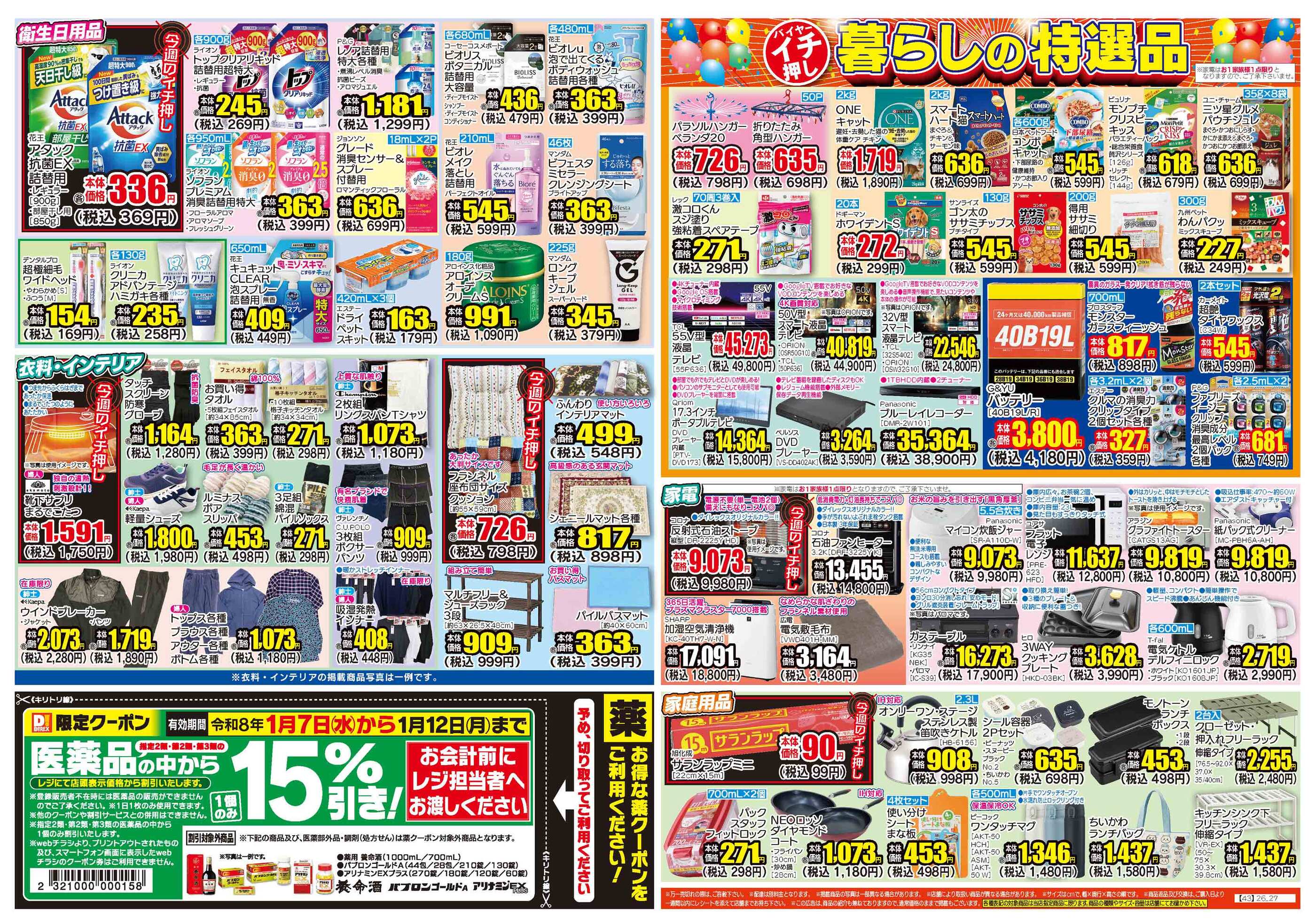 ダイレックス土庄店今週のチラシ(2026年1月19日〜1月25日)
