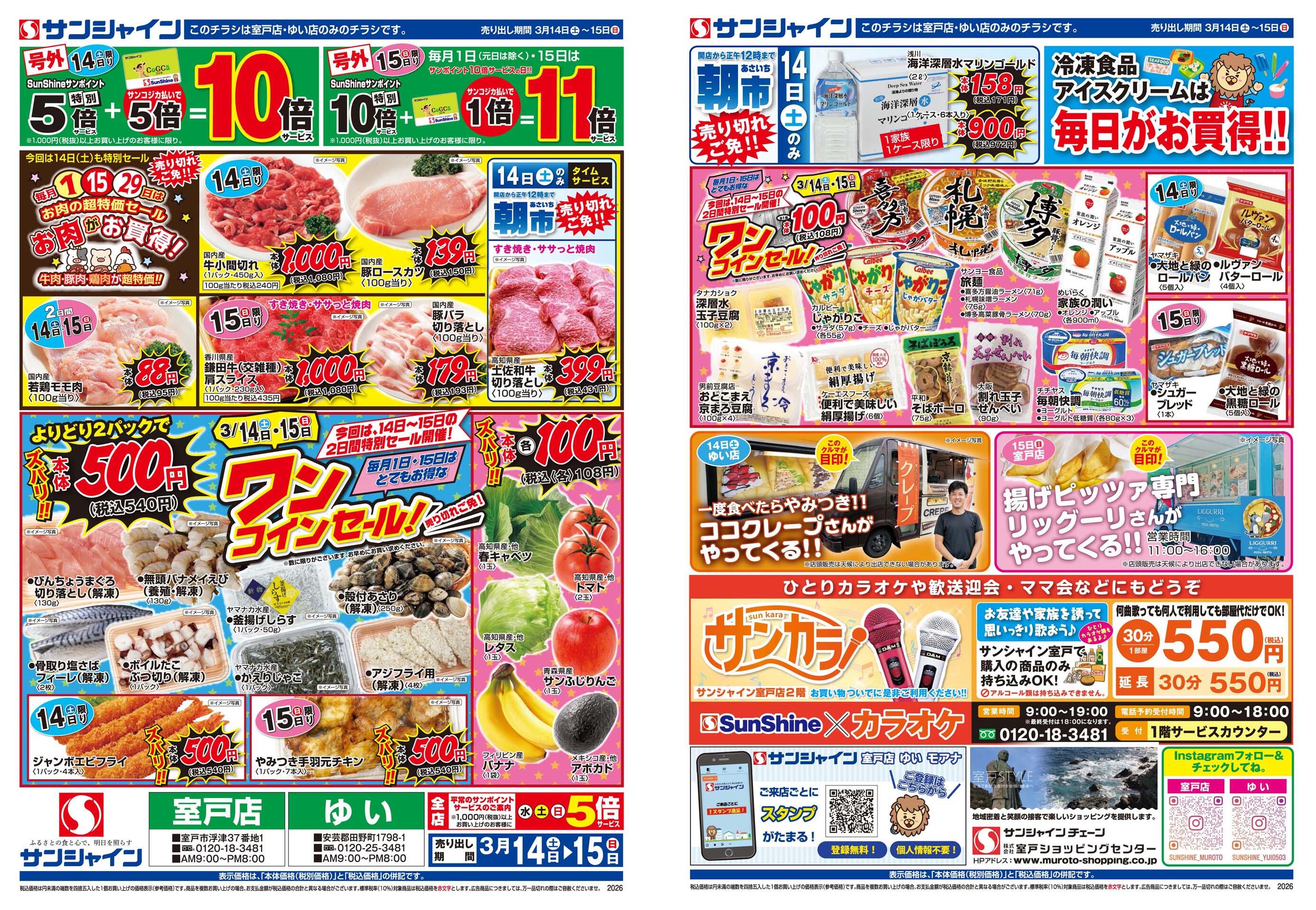 サンシャインゆい店今週のチラシ(2026年3月23日〜3月29日)