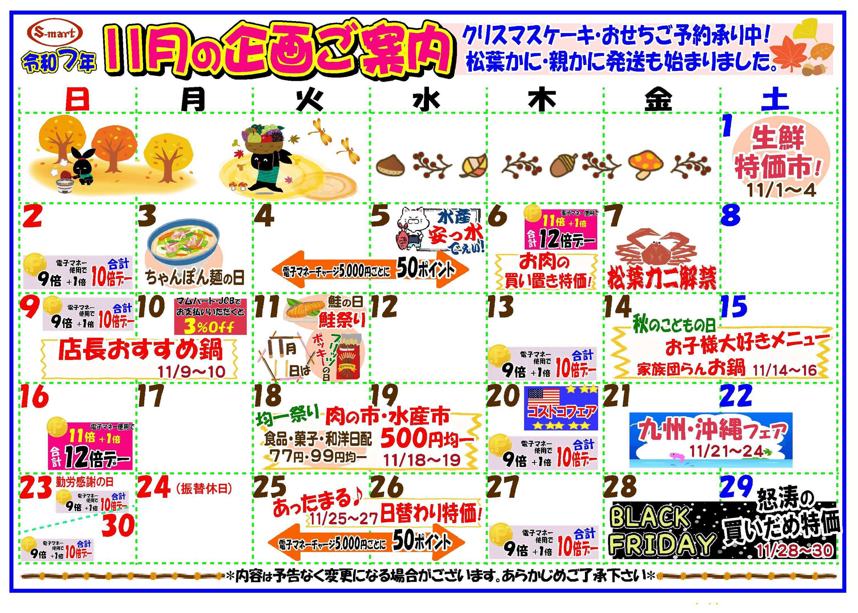 エスマートわかさ店今週のチラシ(2025年11月3日〜11月9日)