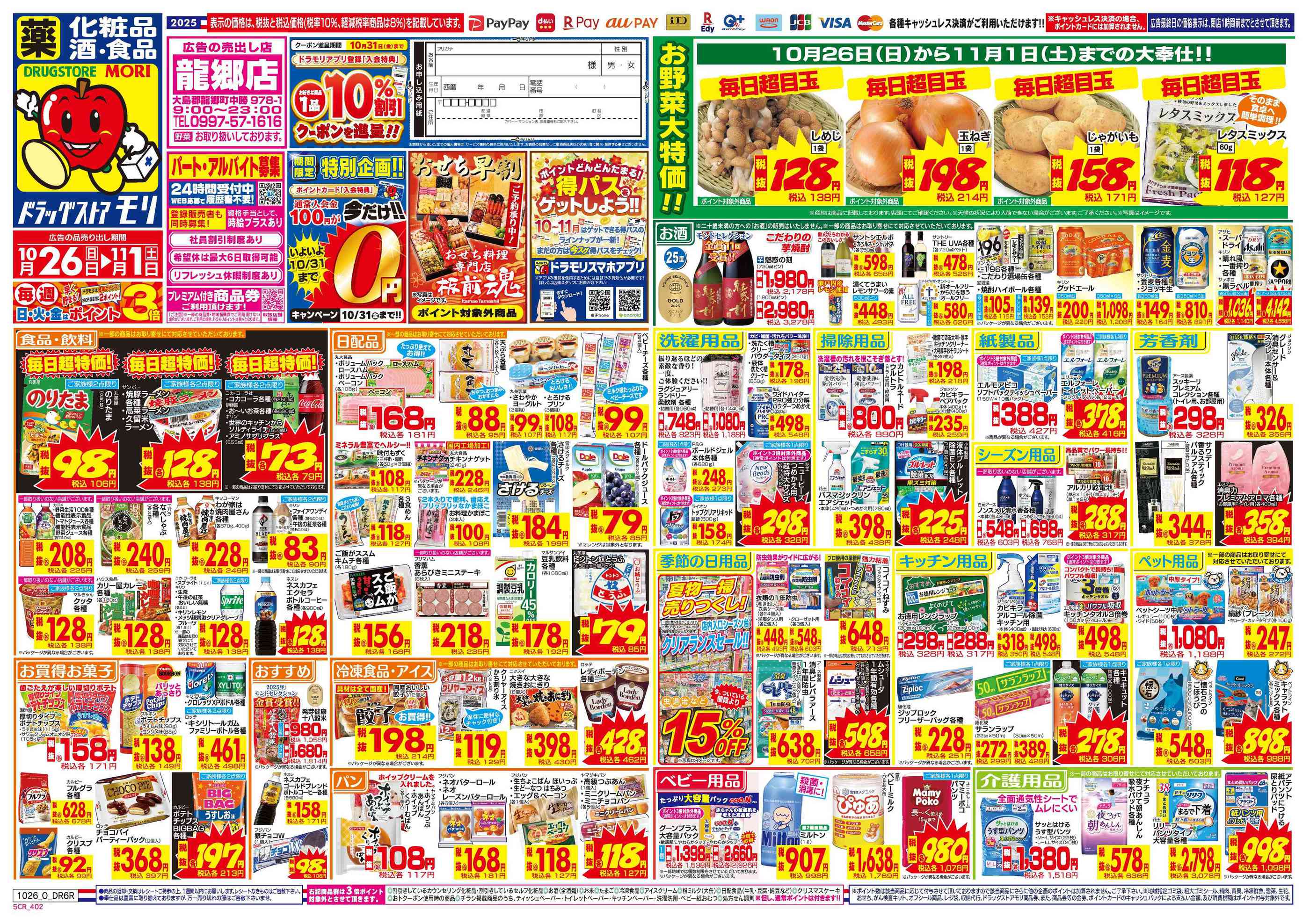 ドラッグストアモリ龍郷店今週のチラシ(2025年10月27日〜11月2日)