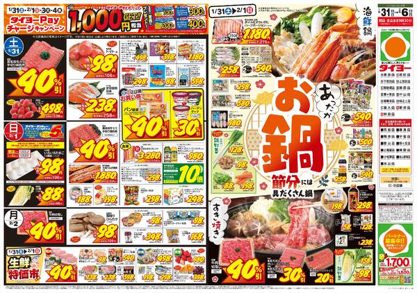 特売やセール情報など最新のチラシを掲載中。(1種類、2枚のチラシを掲載しています)