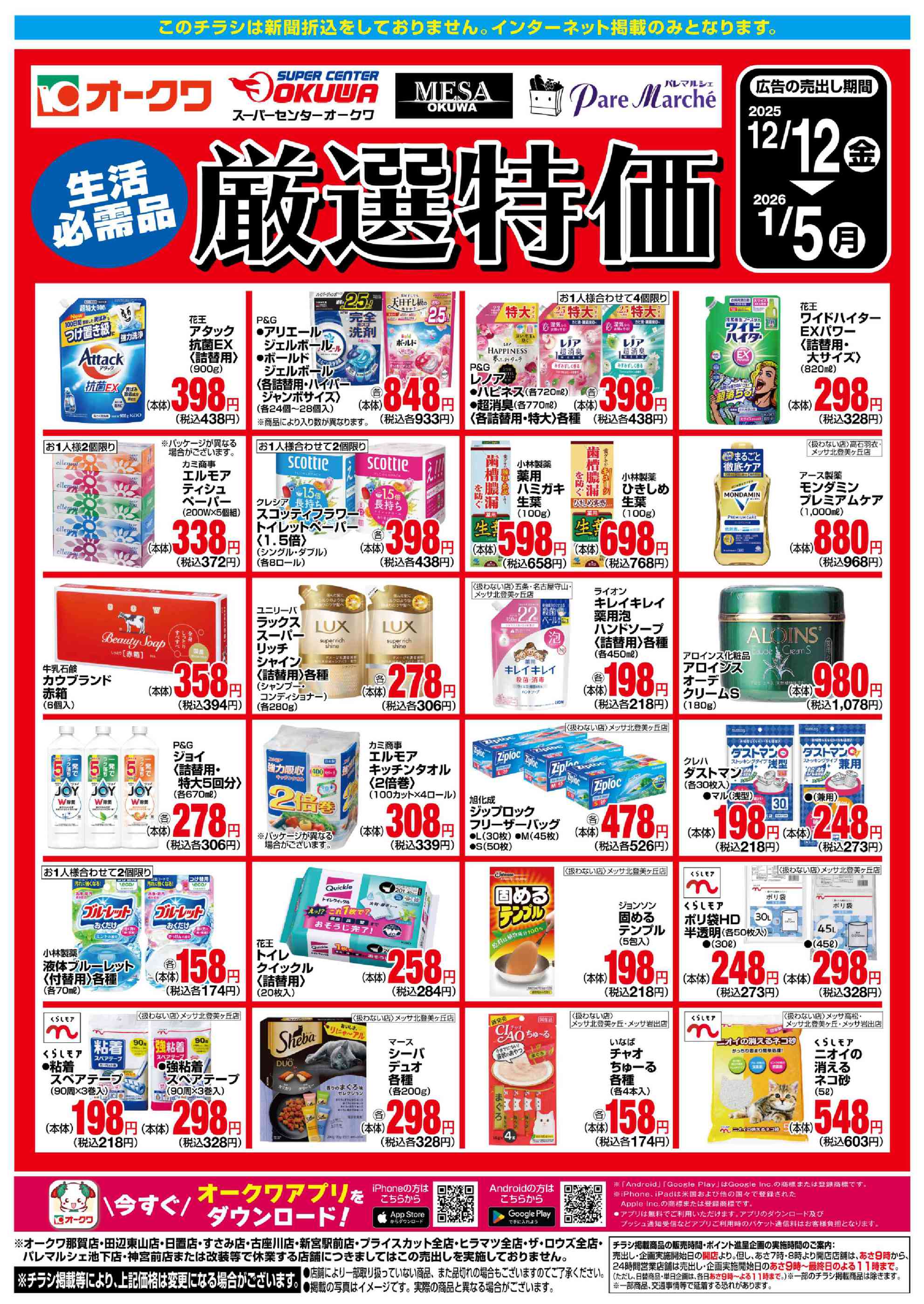 - 2025年12月12日〜2026年1月5日まで生活必需品 厳選特価 (1枚)