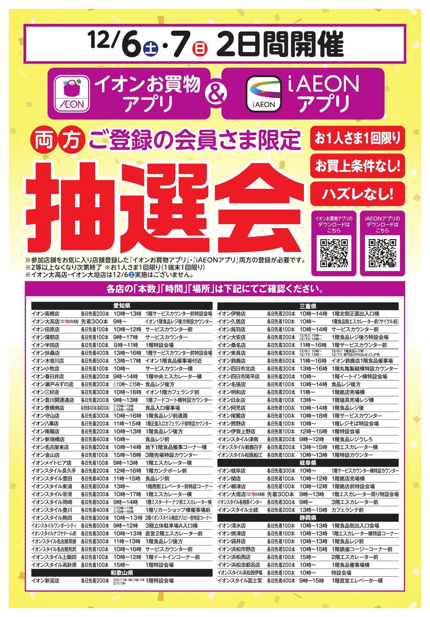 - イオンお買物アプリ+i AEON 両方ご登録の会員さま限定 アプリ抽選会 (1枚)