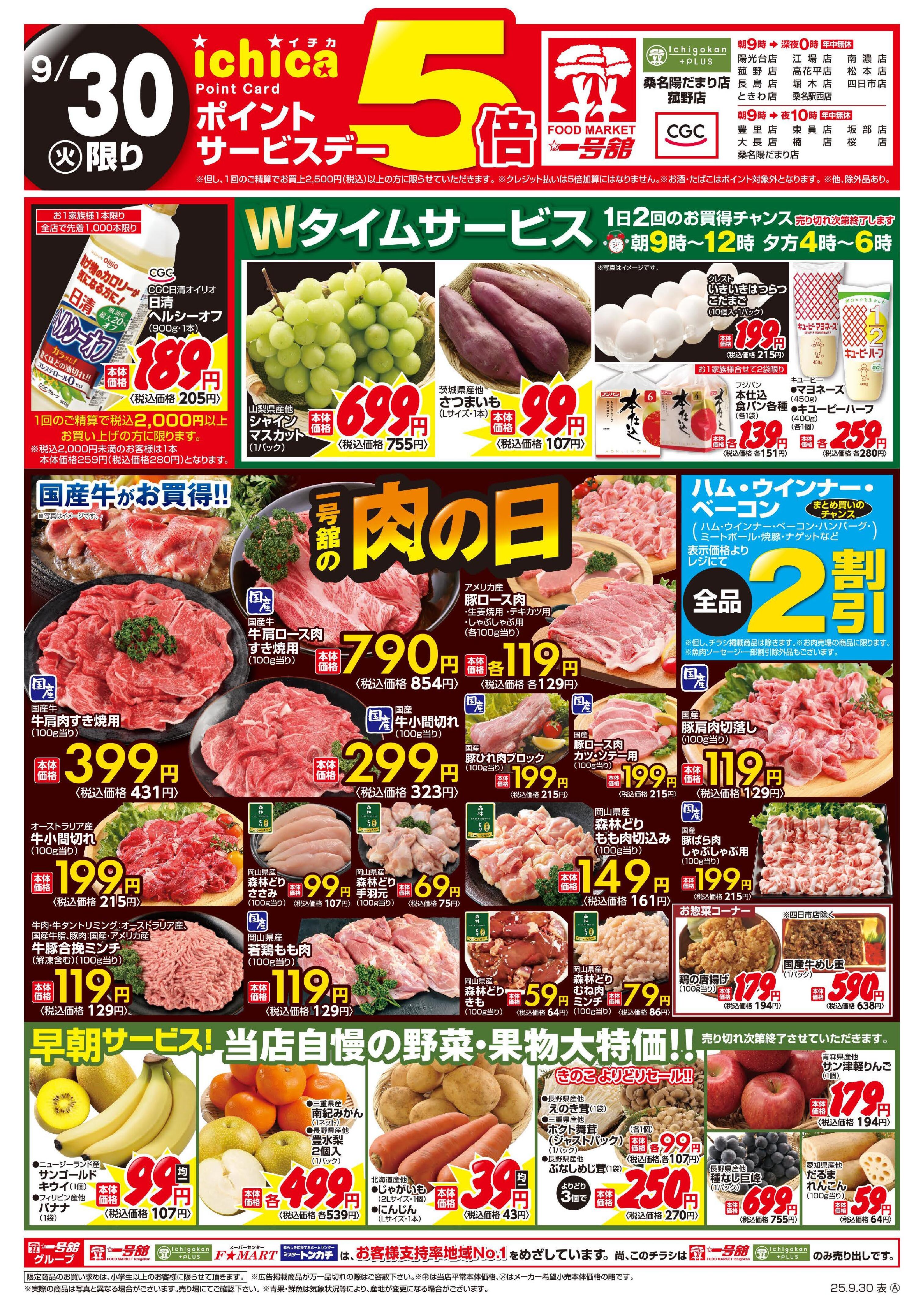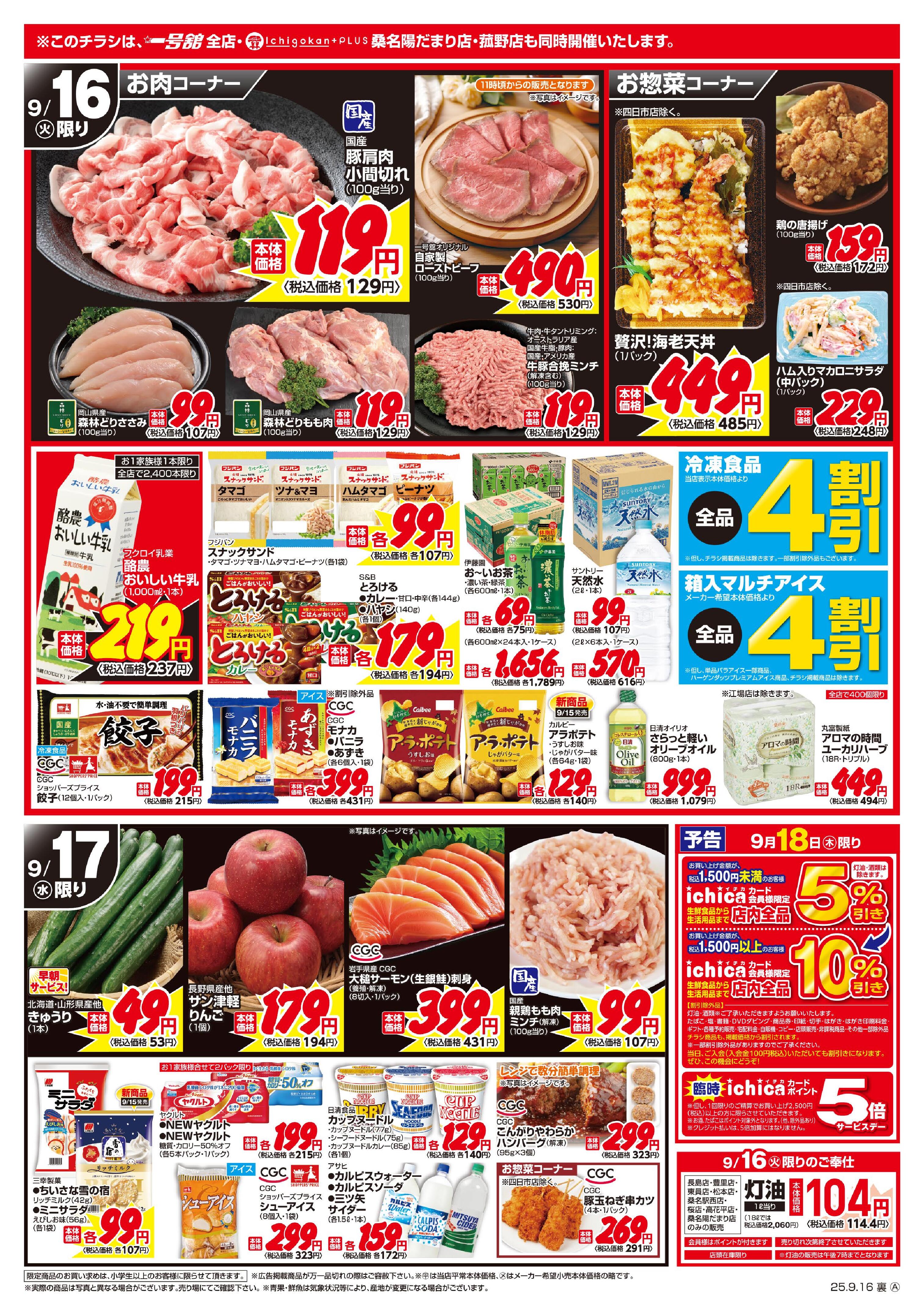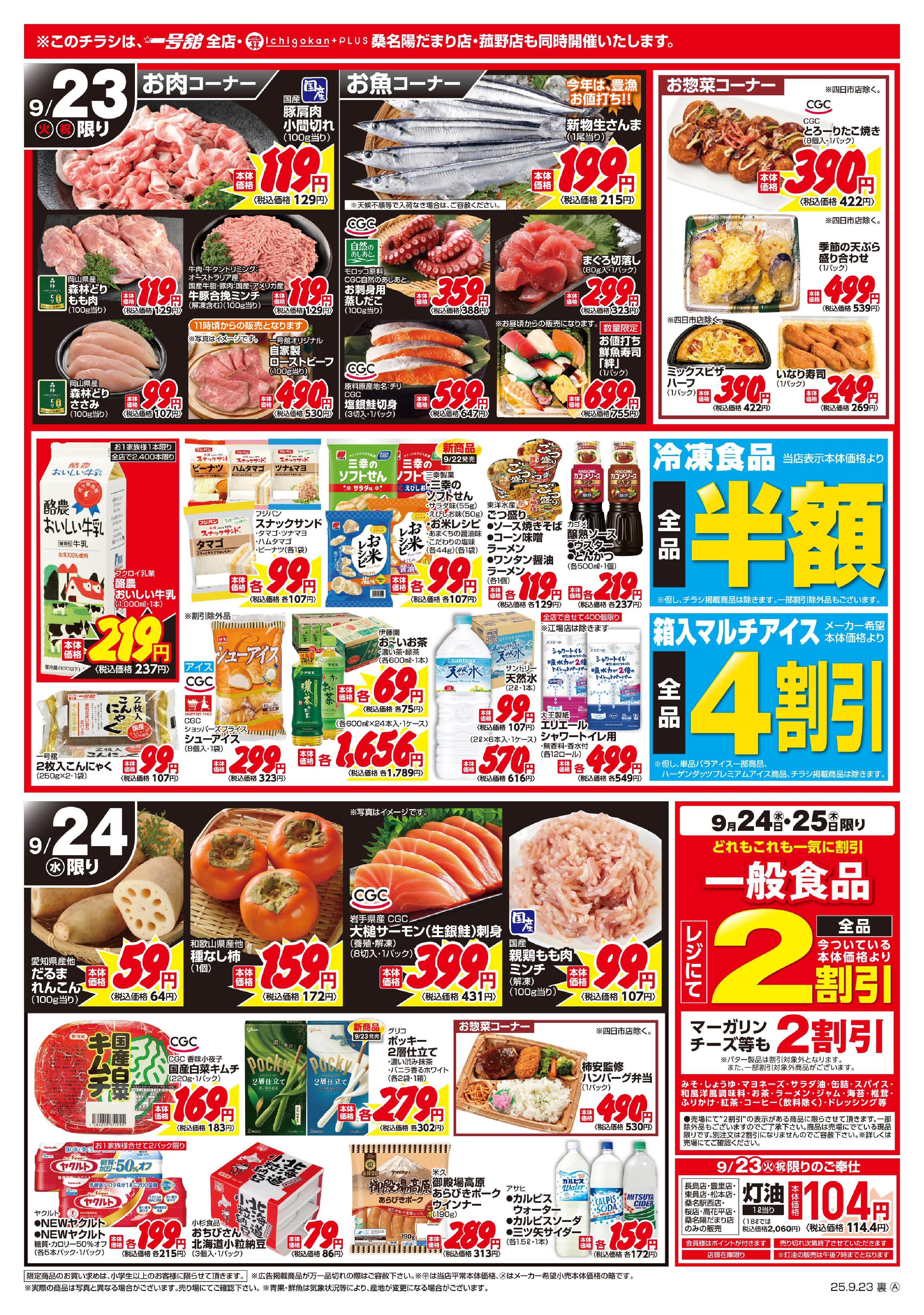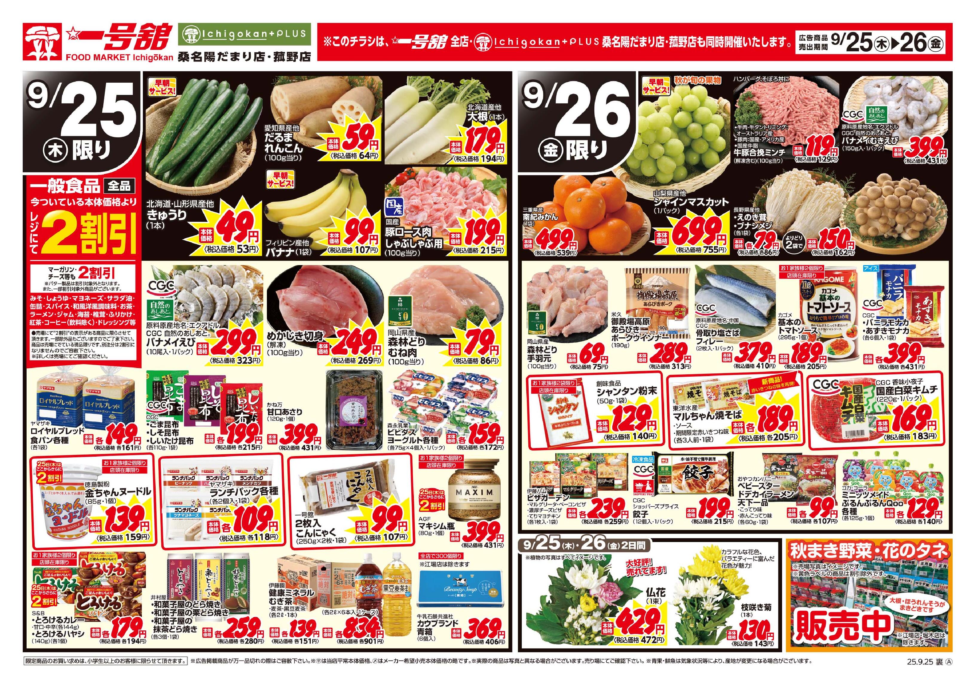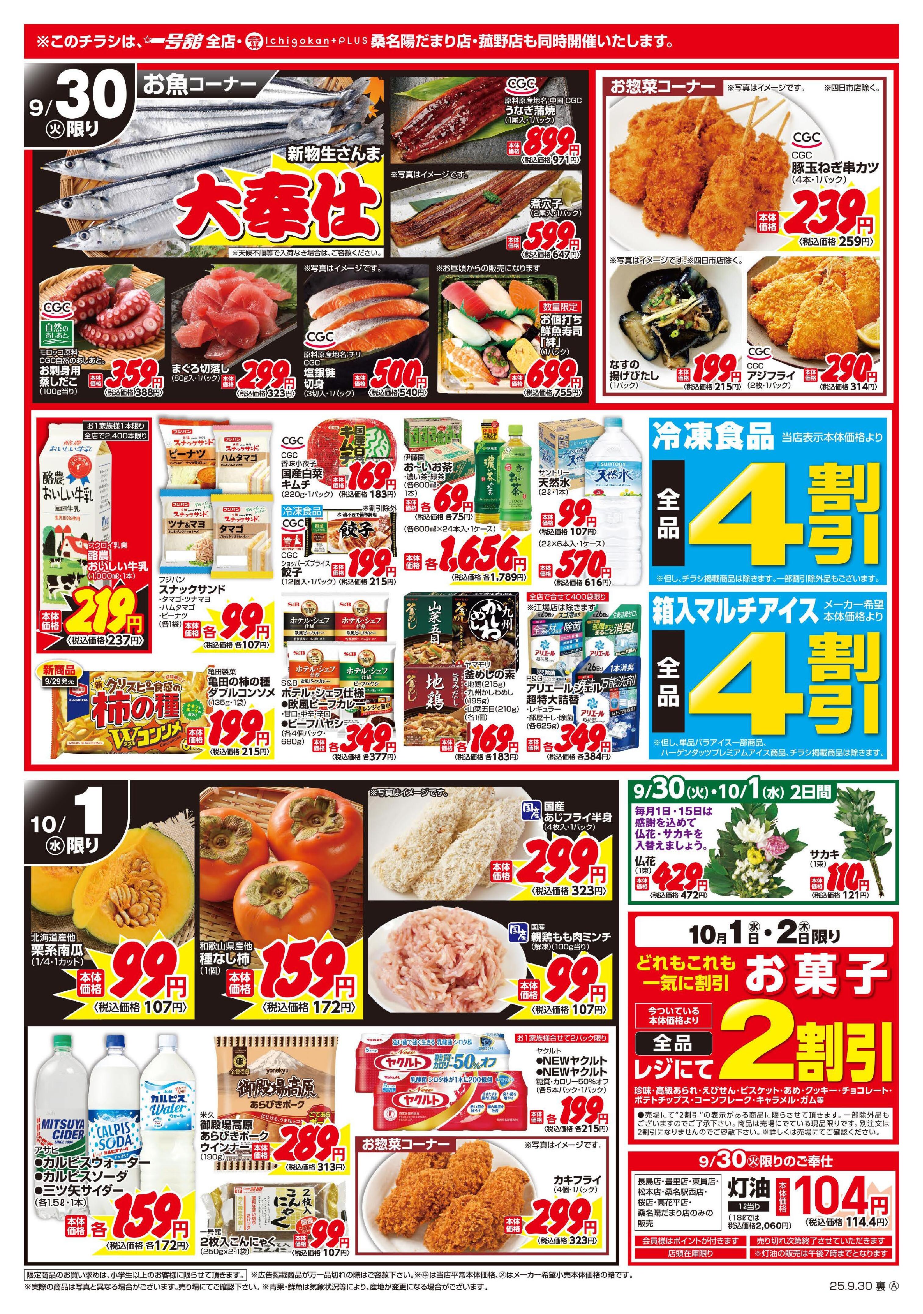 一号舘大長店今週のチラシ(2025年9月29日〜10月5日)