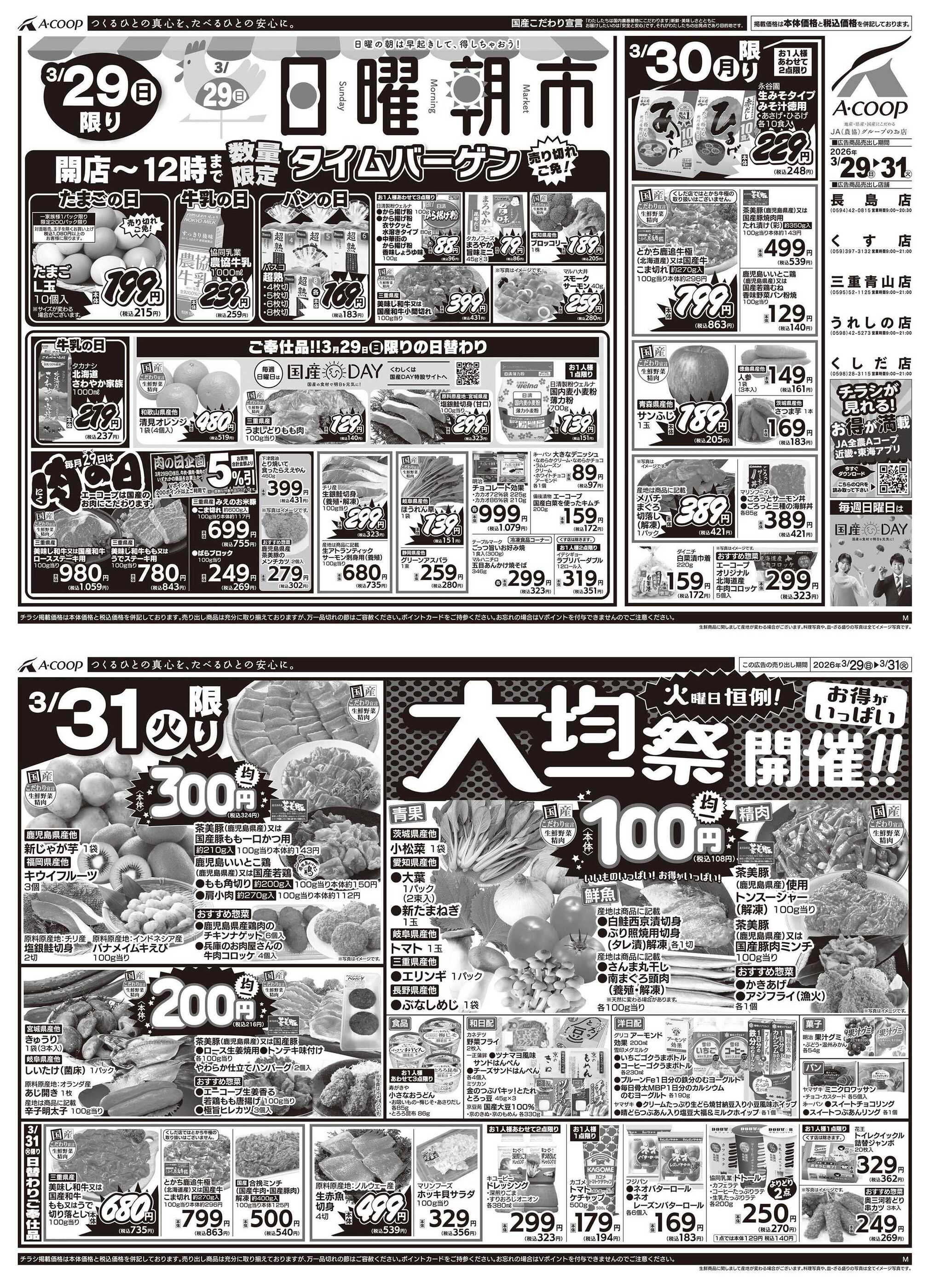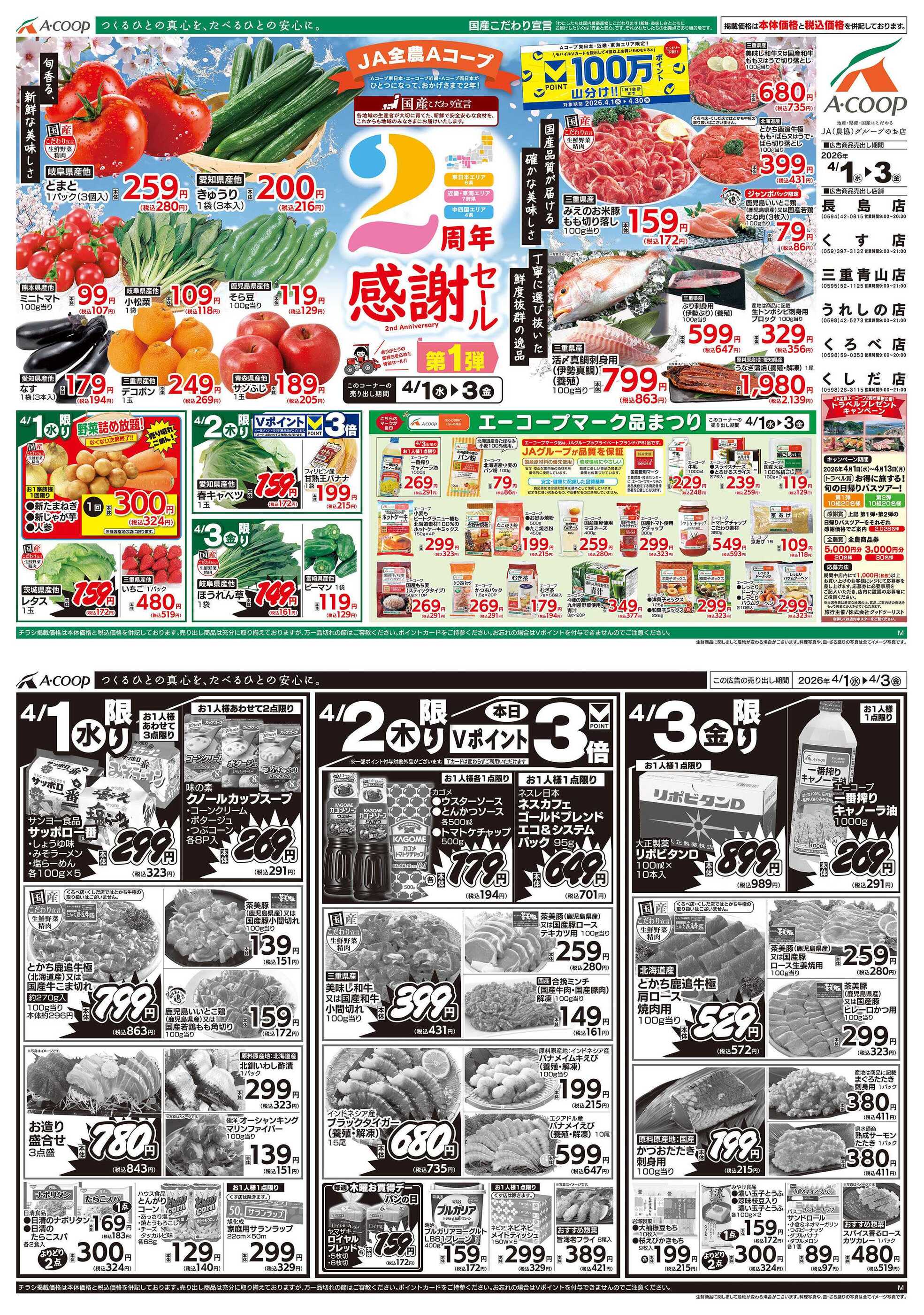 エーコープくす店今週のチラシ(2026年3月30日〜4月5日)