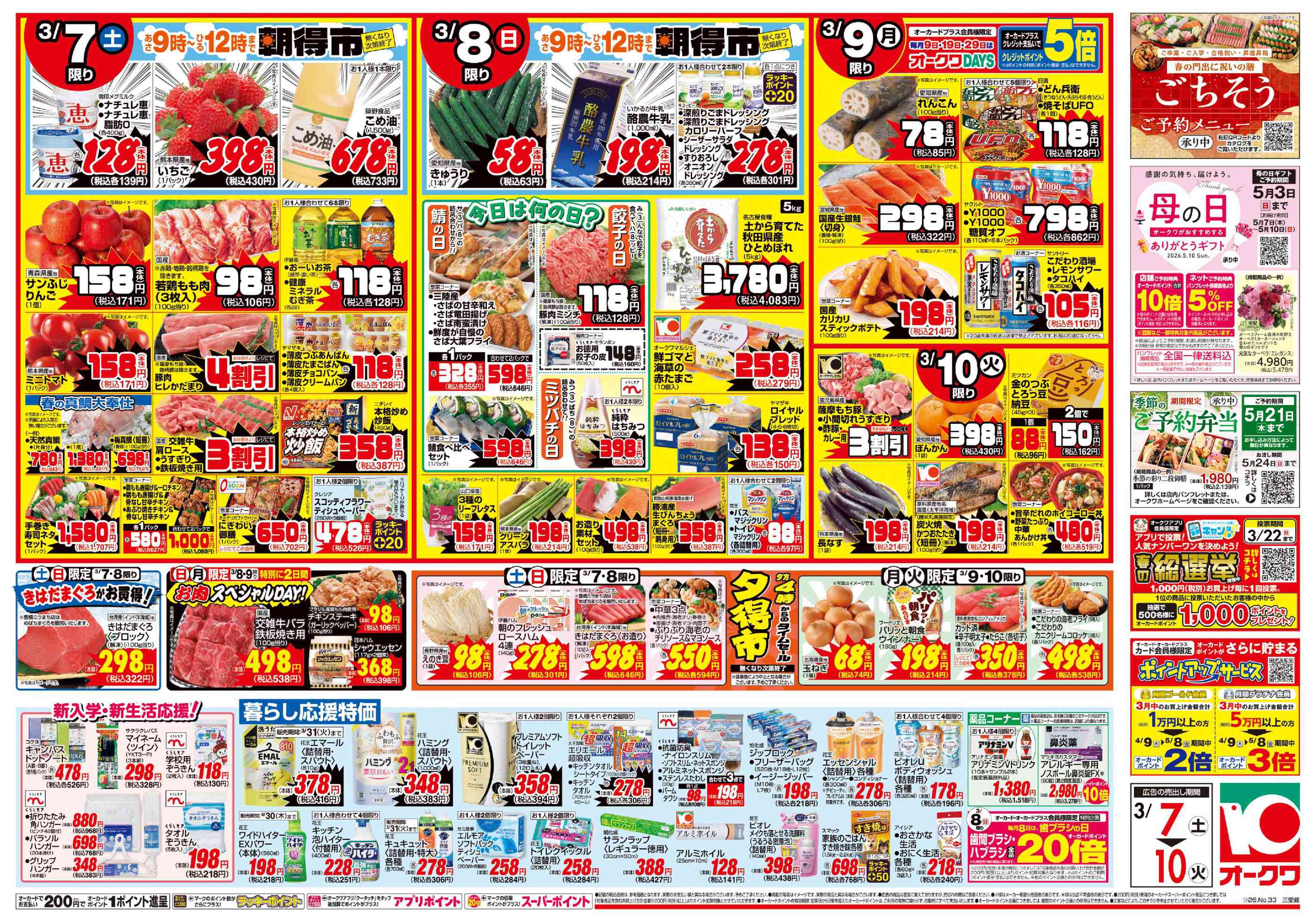オークワ三雲店今週のチラシ(2026年3月2日〜3月8日)