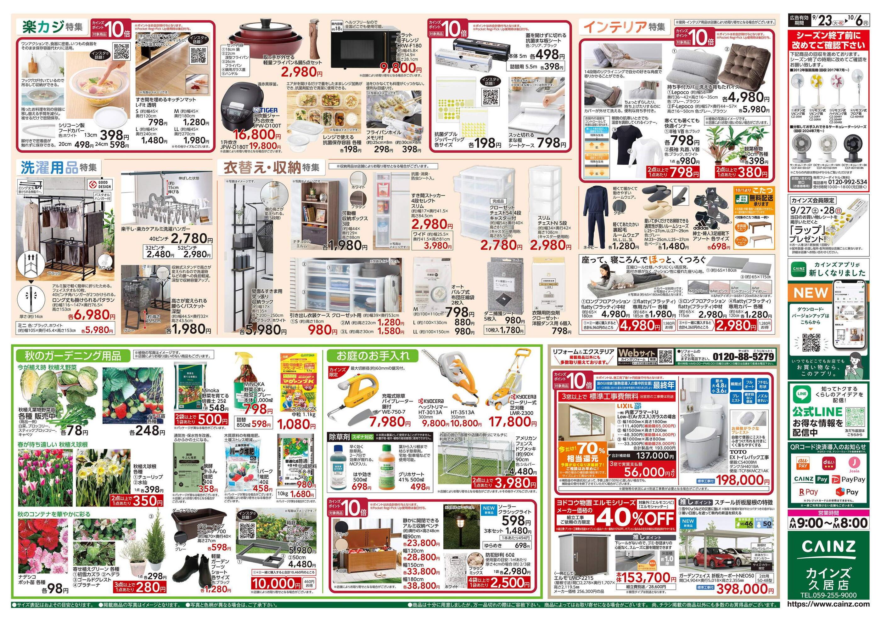 カインズ久居店今週のチラシ(2025年9月29日〜10月5日)