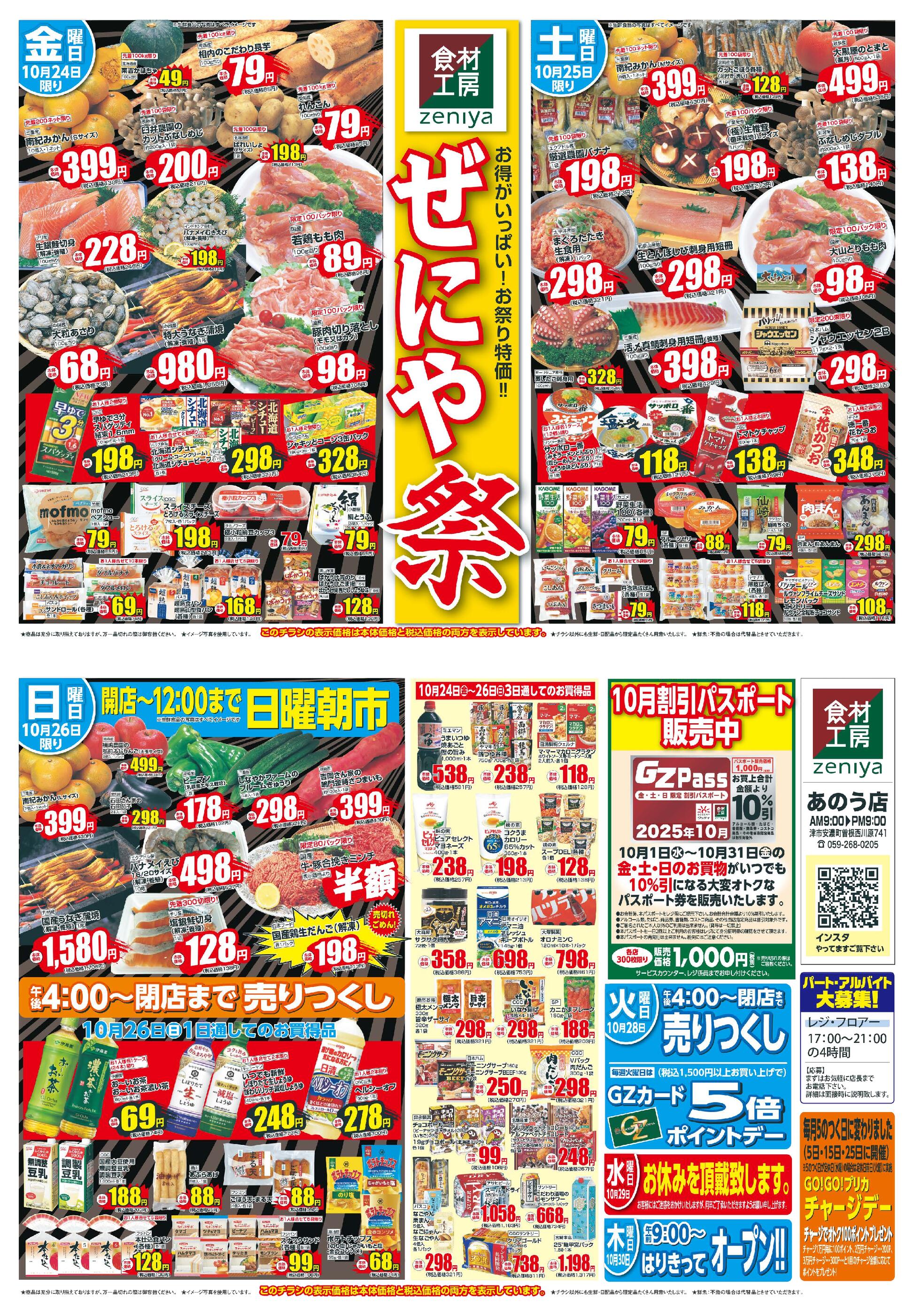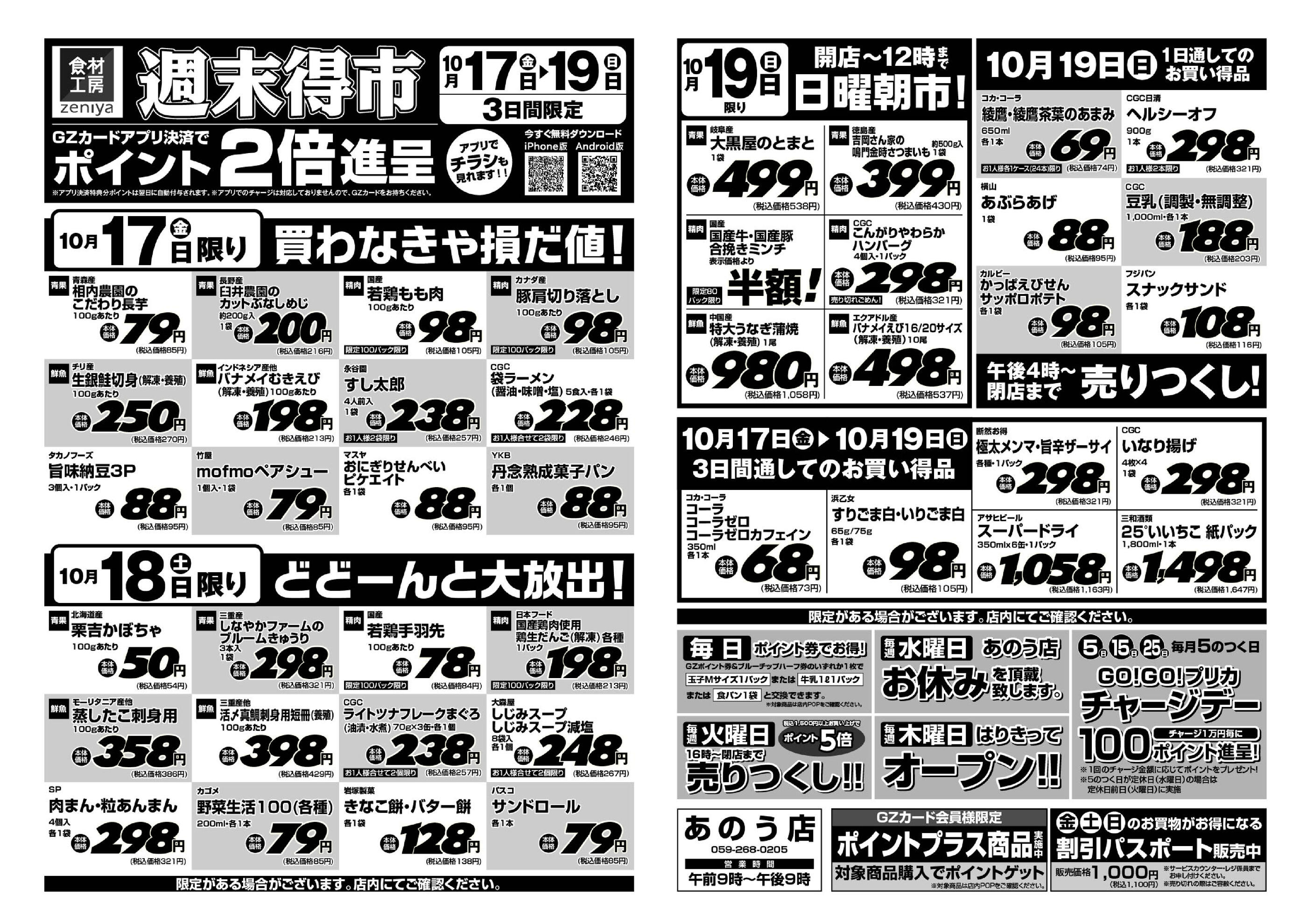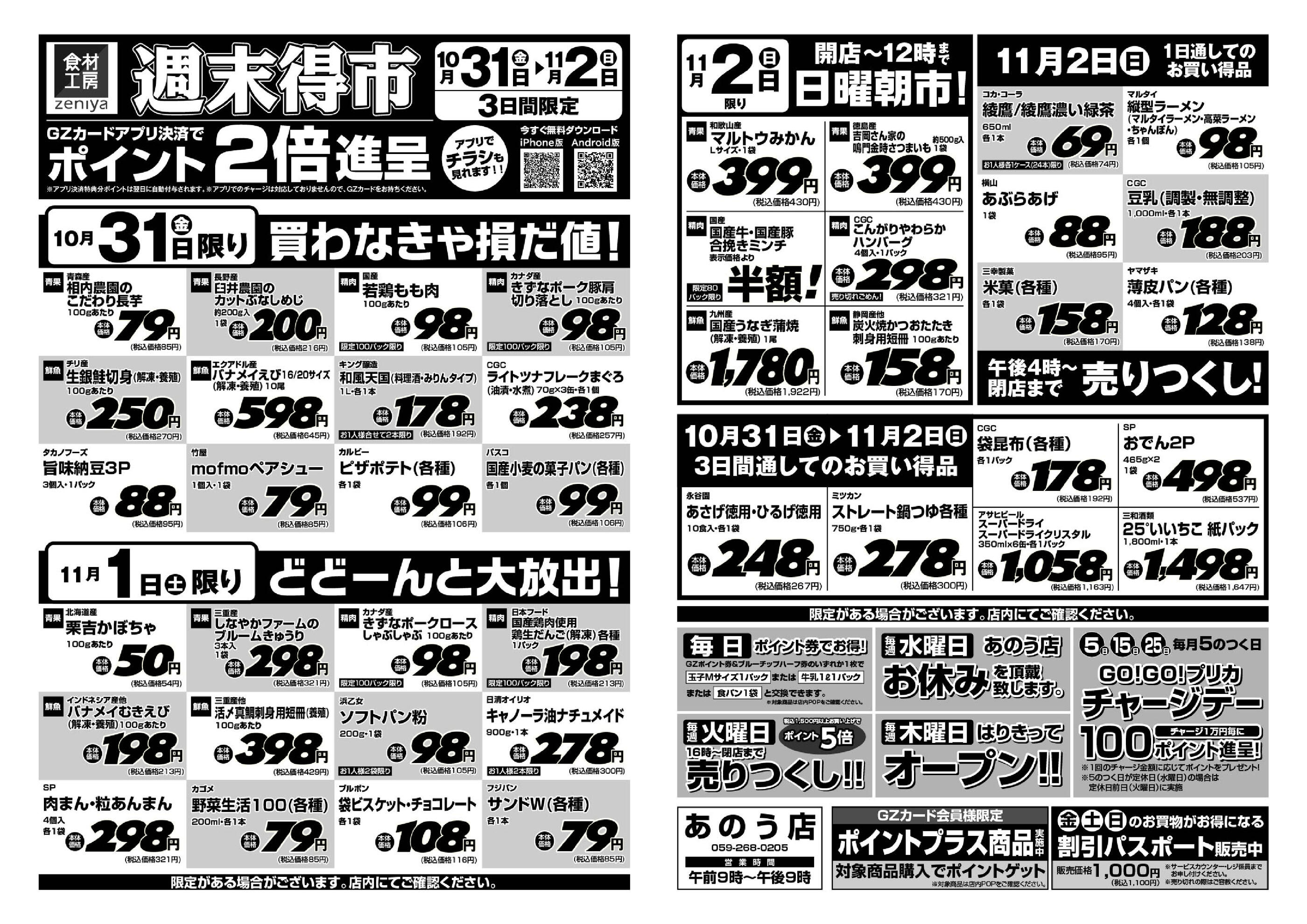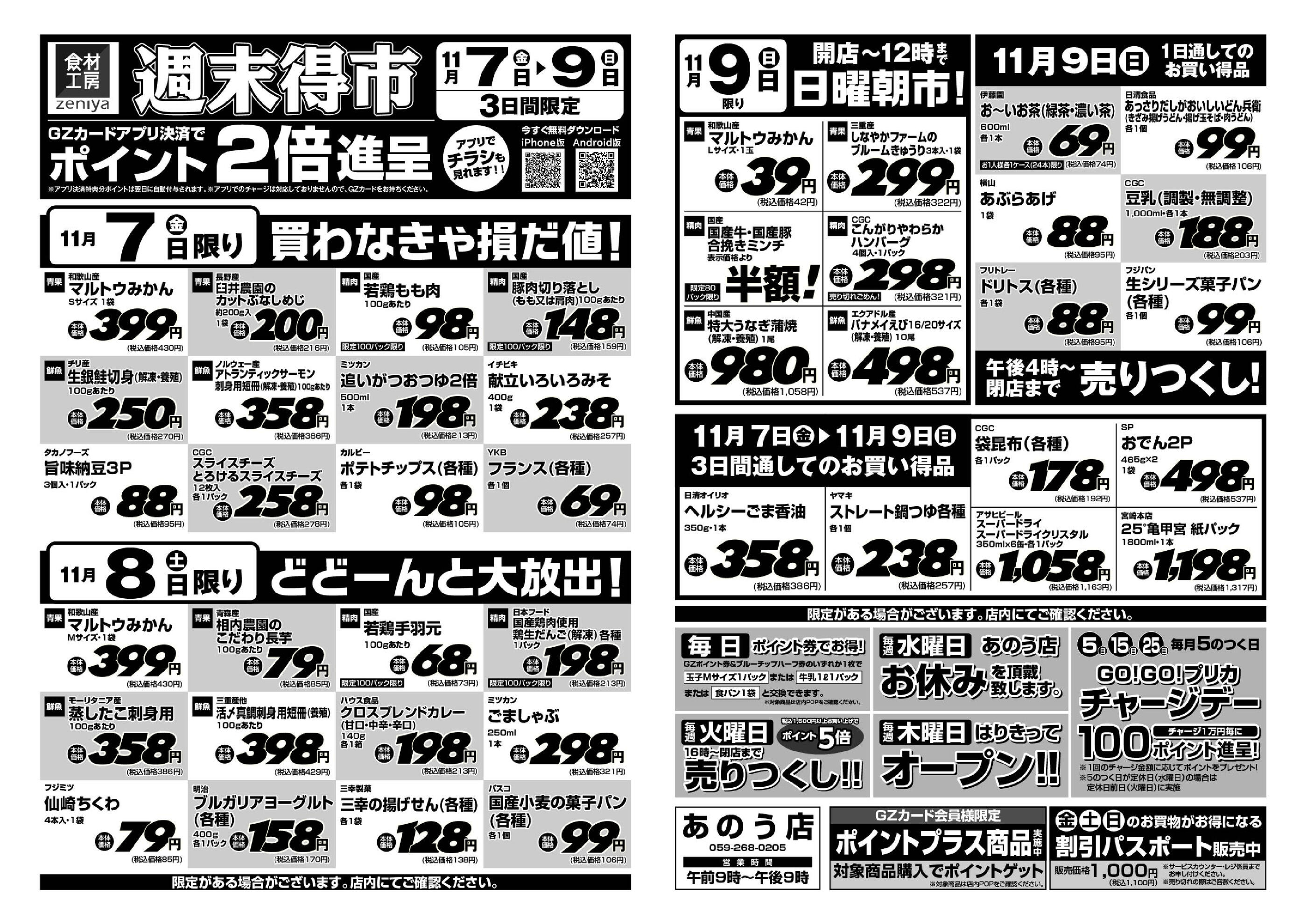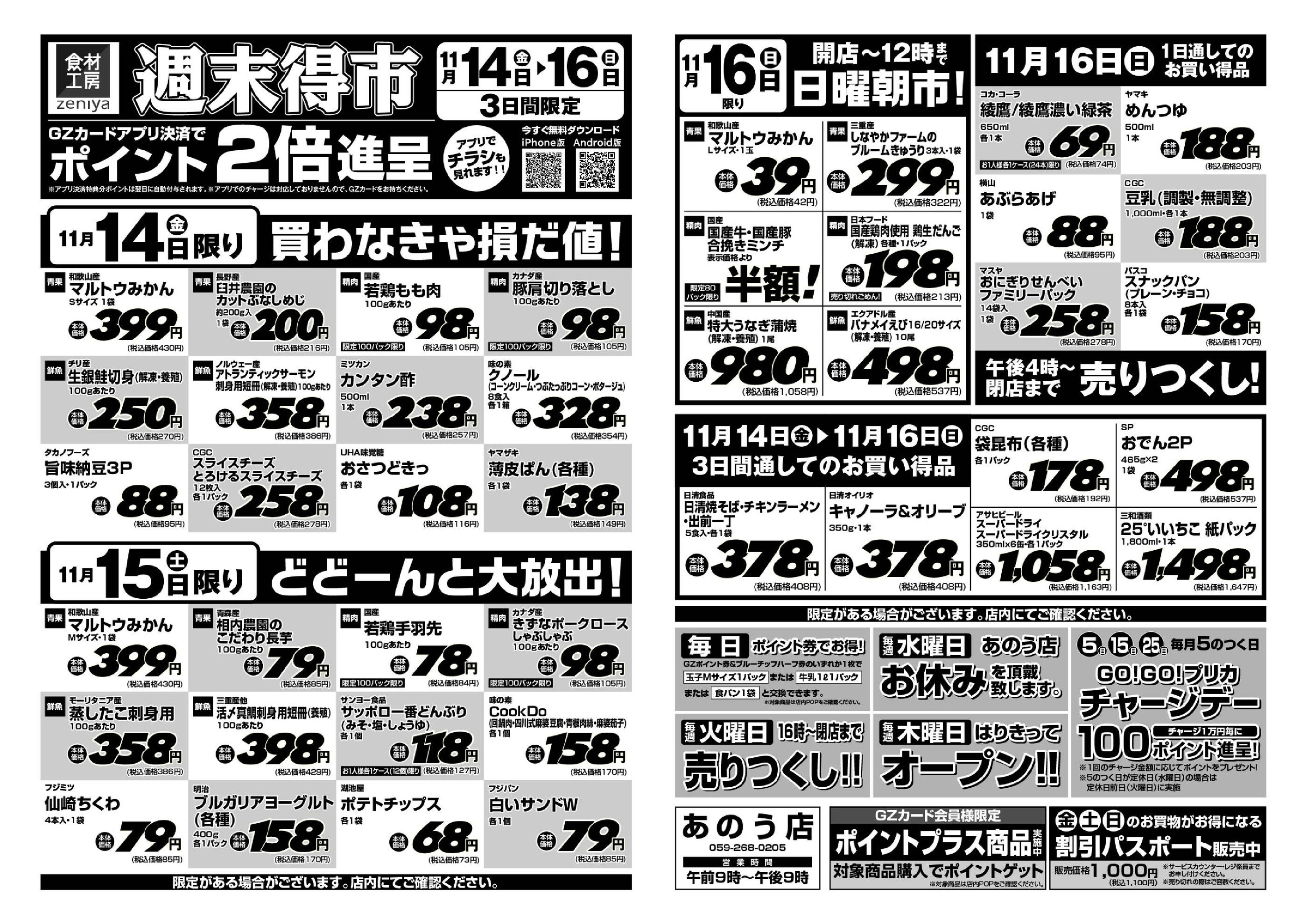 ぜにやあのう店今週のチラシ(2025年11月10日〜11月16日)