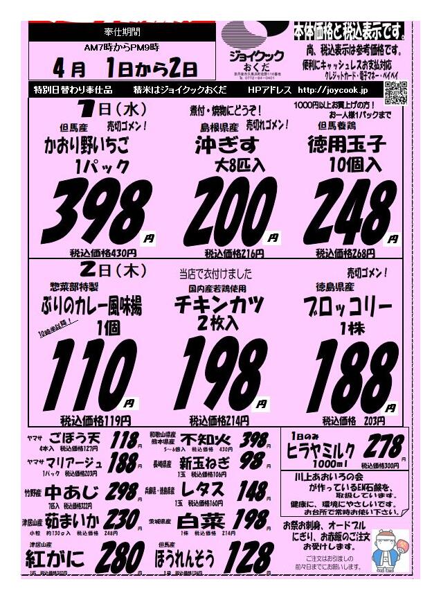 ジョイクックおくだ2026-04-01更新