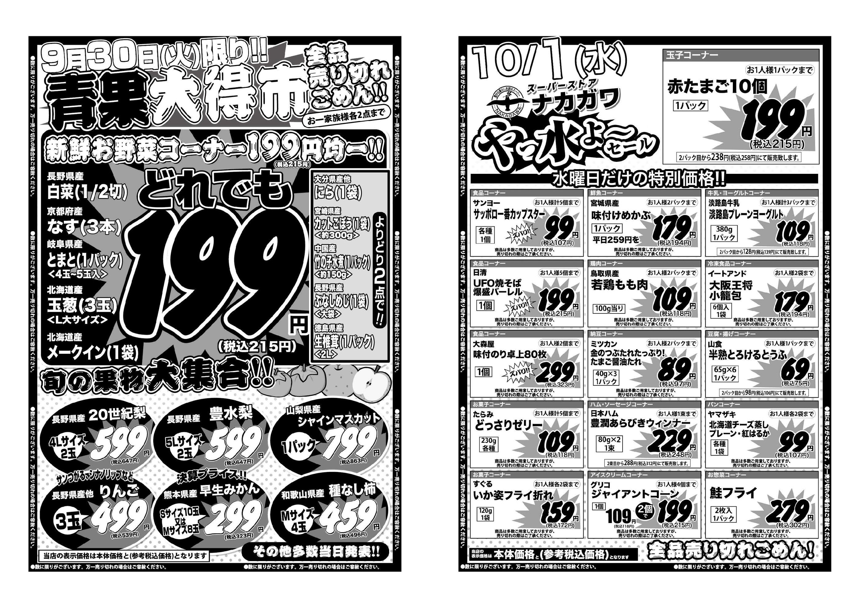 スーパーストアナカガワ大住ヶ丘店今週のチラシ(2025年9月29日〜10月5日)