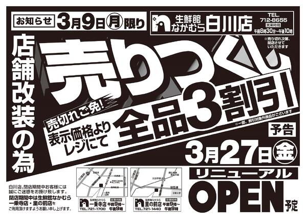特売やセール情報など最新のチラシを掲載中。(1種類、2枚のチラシを掲載しています)