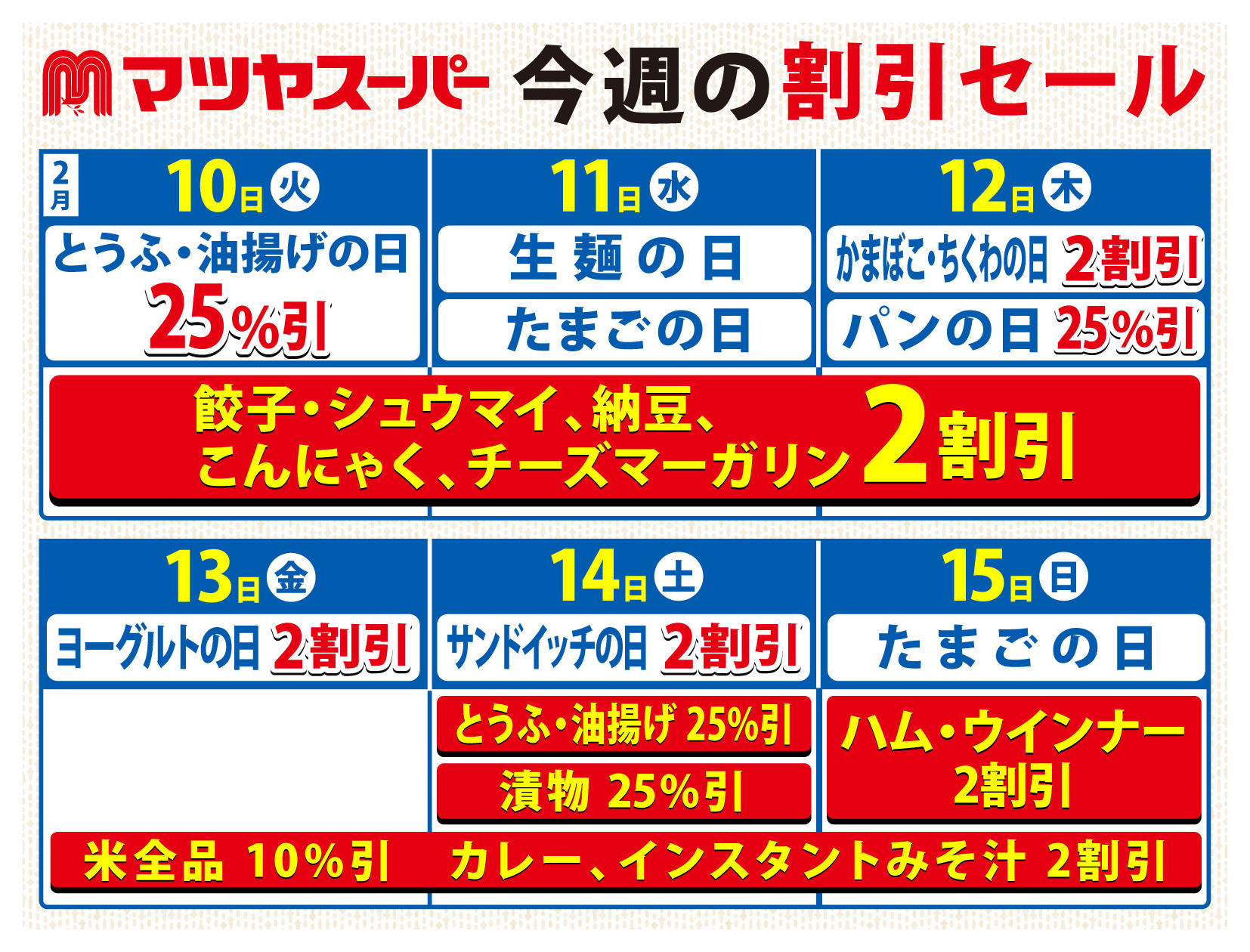 マツヤスーパー大宅店今週のチラシ(2026年2月9日〜2月15日)