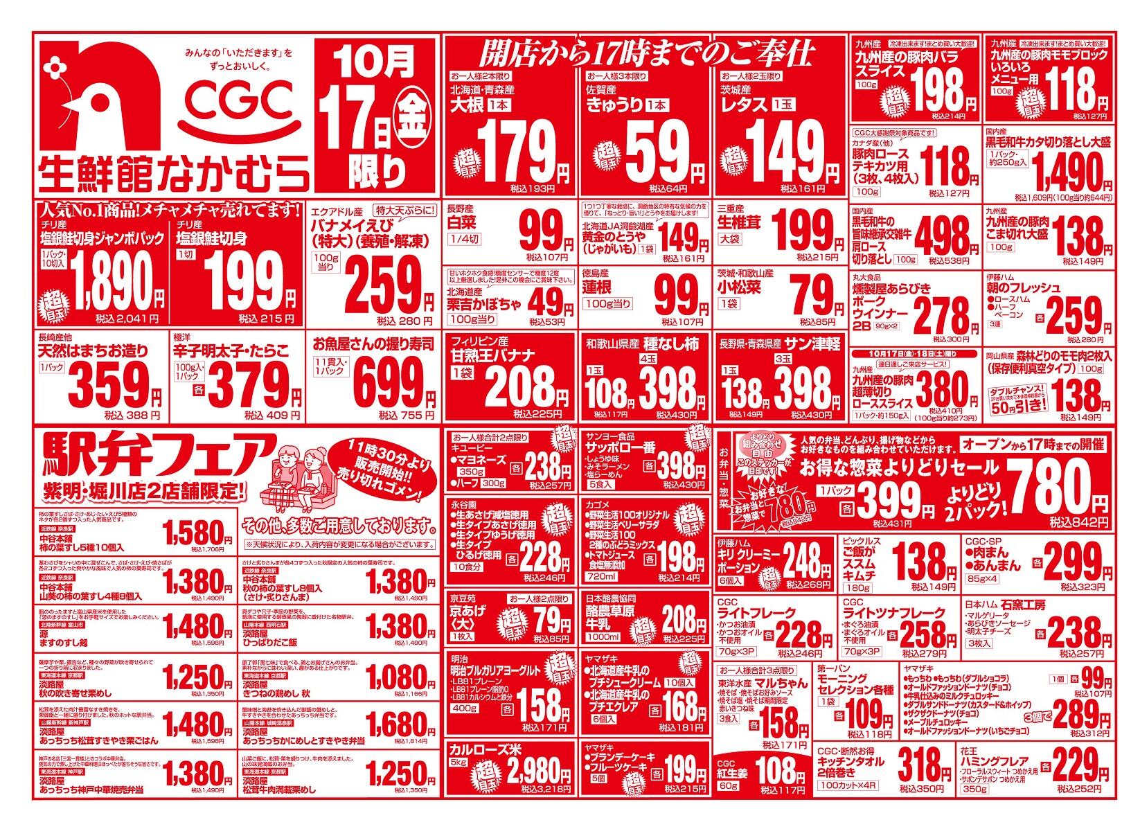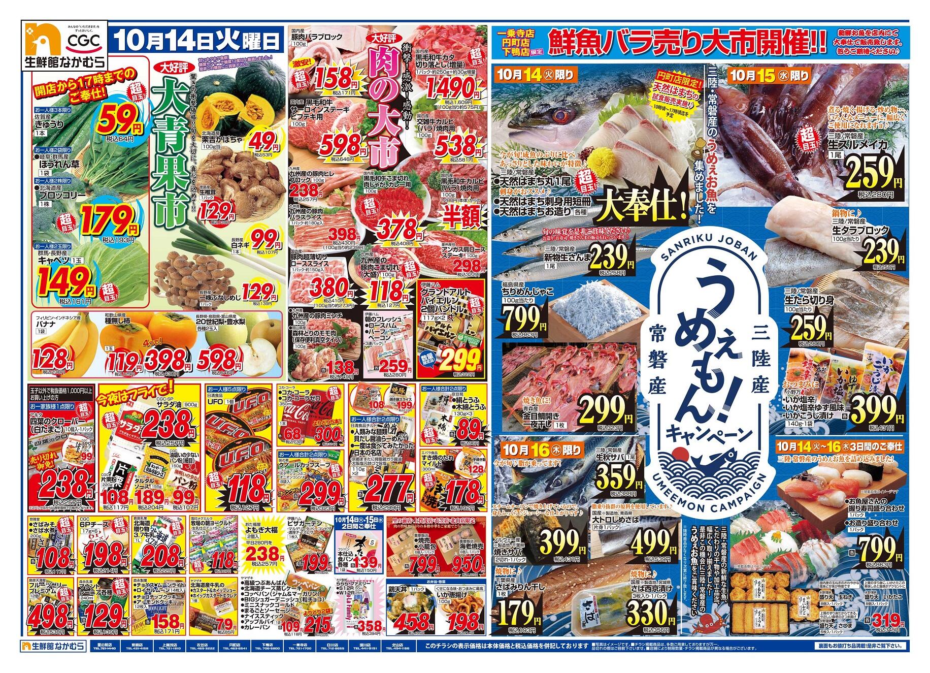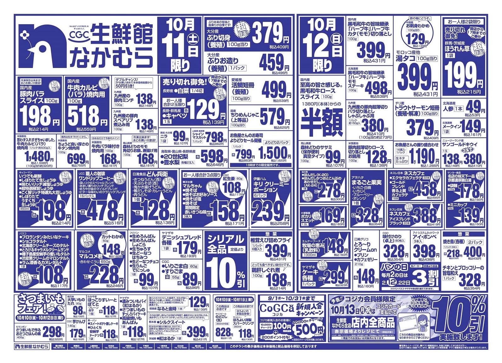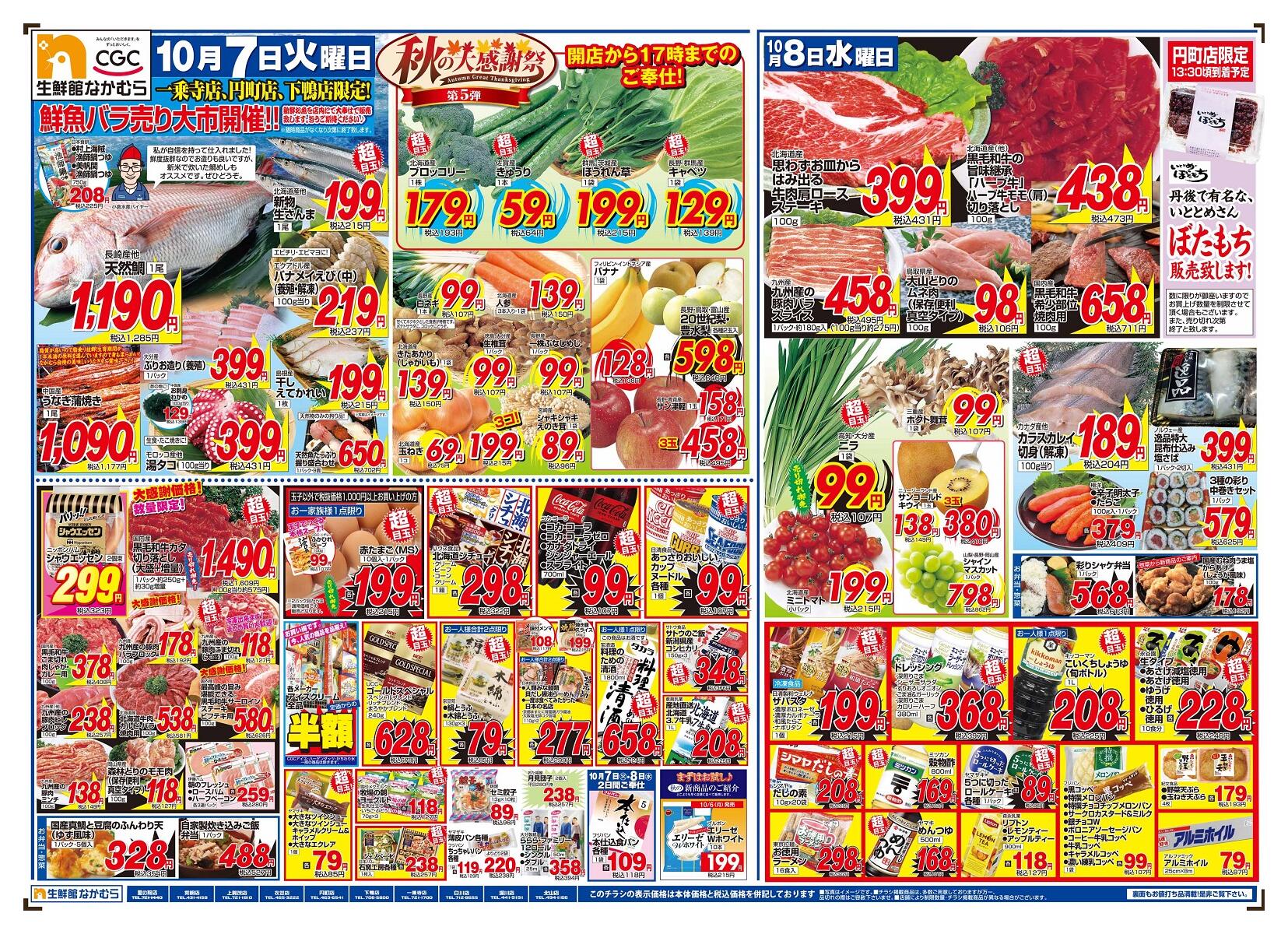 生鮮館なかむら里の前店今週のチラシ(2025年10月13日〜10月19日)