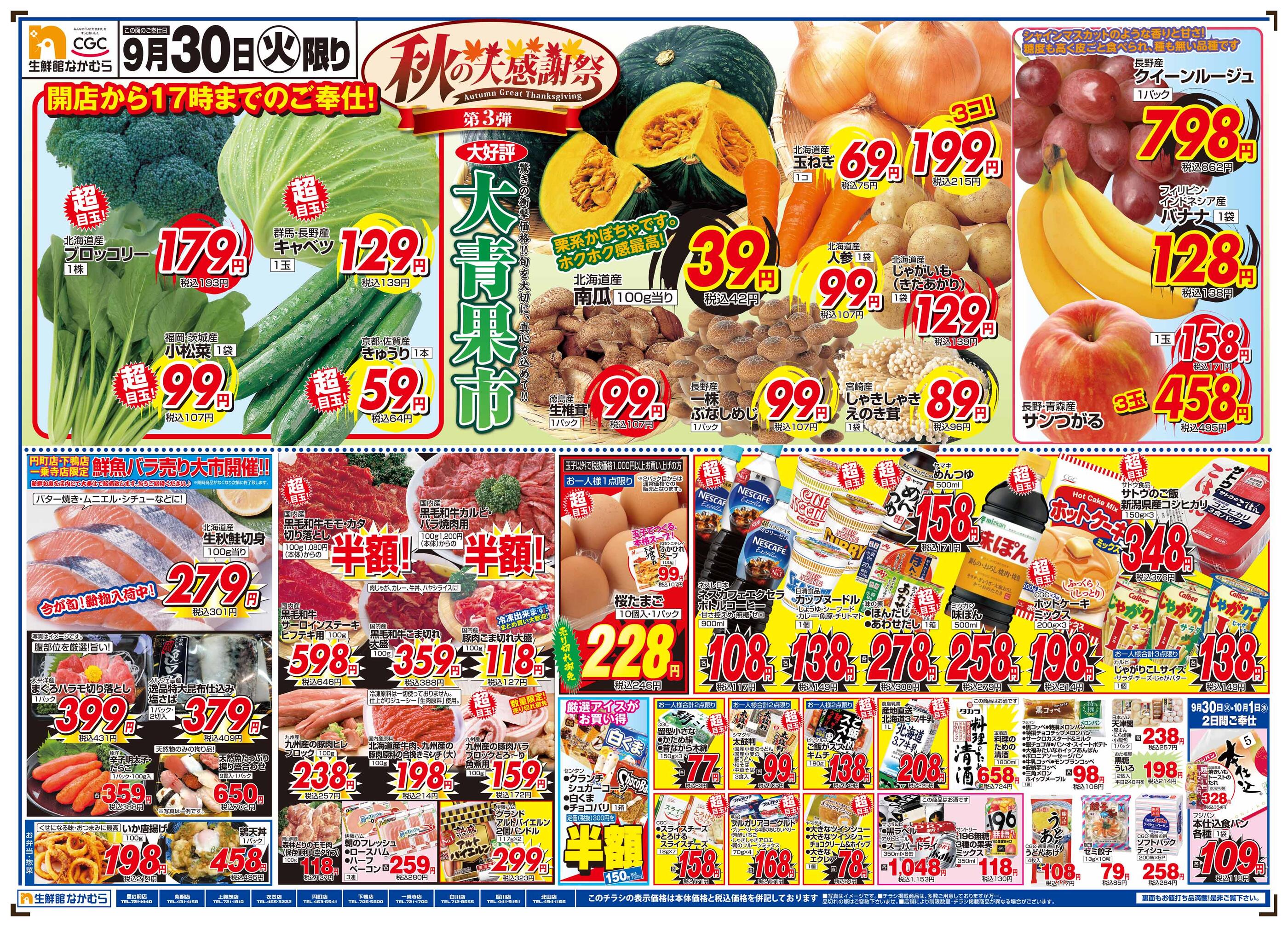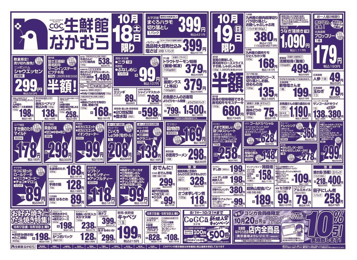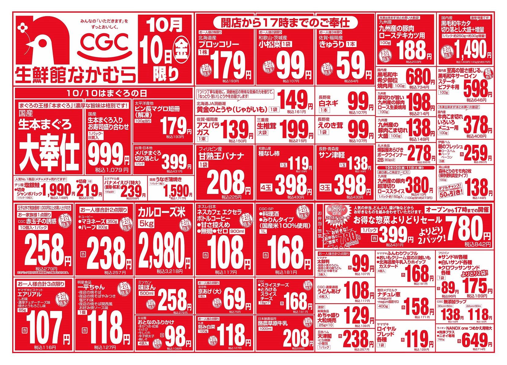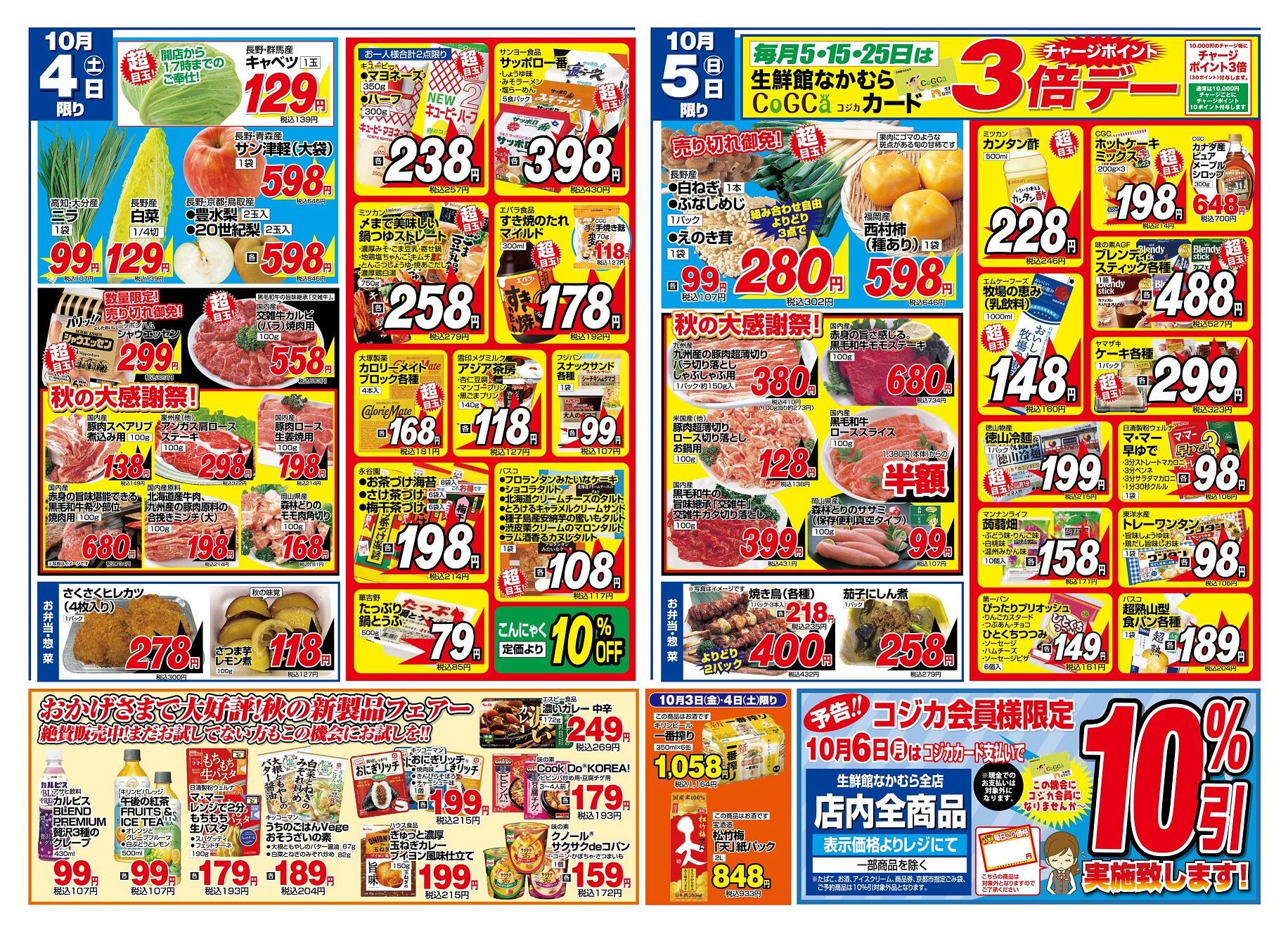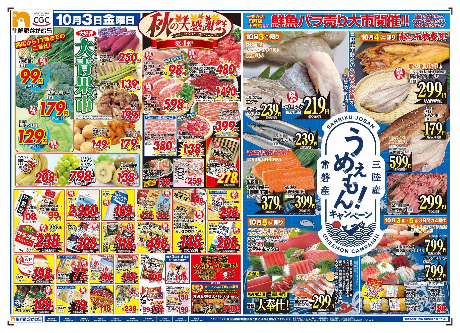 生鮮館なかむら里の前店今週のチラシ(2025年10月13日〜10月19日)