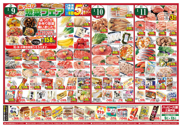特売やセール情報など最新のチラシを掲載中。(9種類、13枚のチラシを掲載しています)