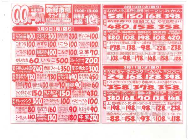 ※「店舗の掲載内容について」チラシガイドに掲載している情報は、独自に調査した内容及びユーザーから頂いた情報を掲載しています。お気づきの点がございましたら「お問い合わせ」よりご連絡ください。また店舗の営業状況、商品に関するお問い合わせは直接店舗事業者にご確認ください。