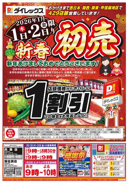 ※「店舗の掲載内容について」チラシガイドに掲載している情報は、独自に調査した内容及びユーザーから頂いた情報を掲載しています。お気づきの点がございましたら「お問い合わせ」よりご連絡ください。また店舗の営業状況、商品に関するお問い合わせは直接店舗事業者にご確認ください。