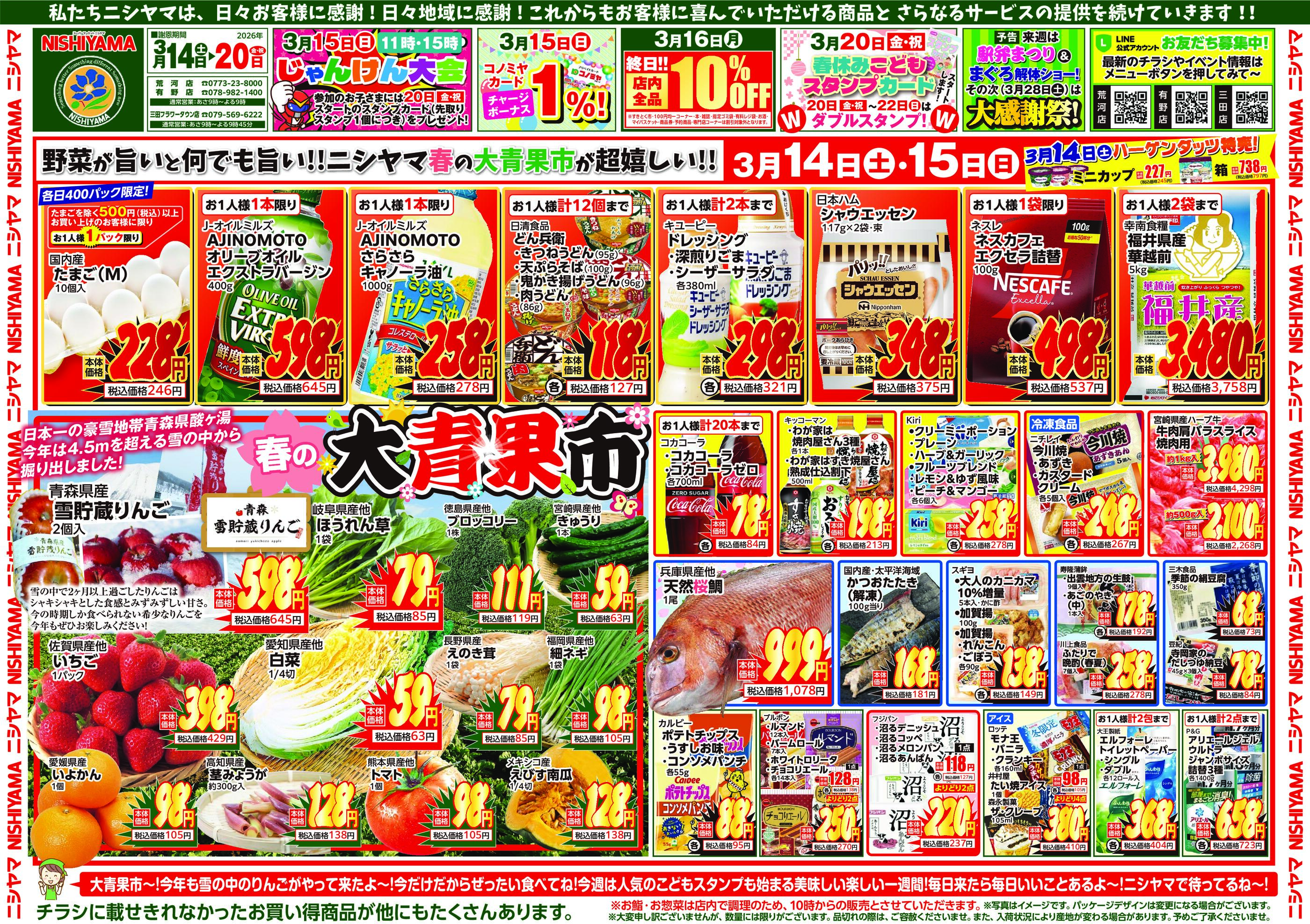 ニシヤマ三田フラワータウン店今週のチラシ(2026年3月30日〜4月5日)