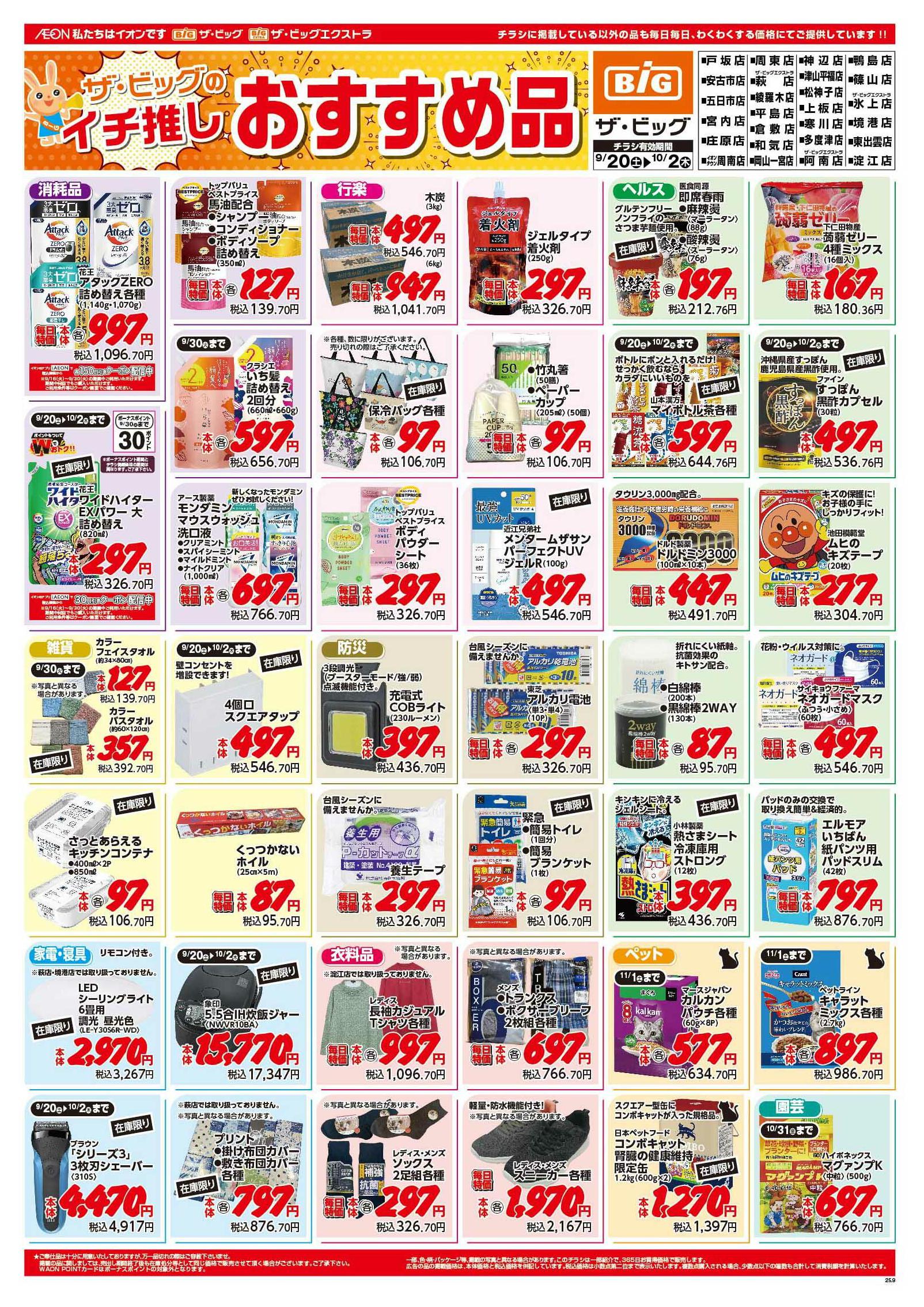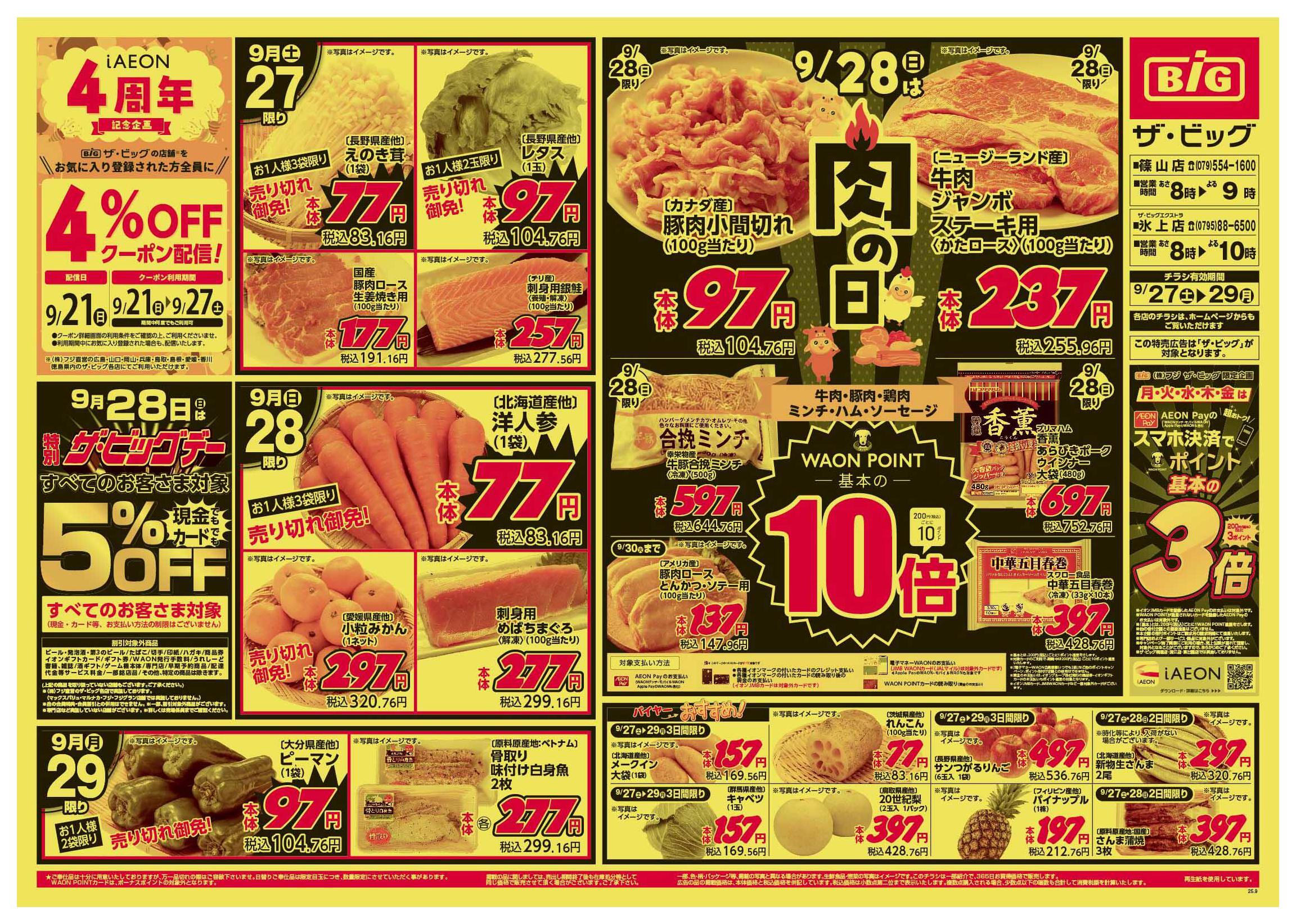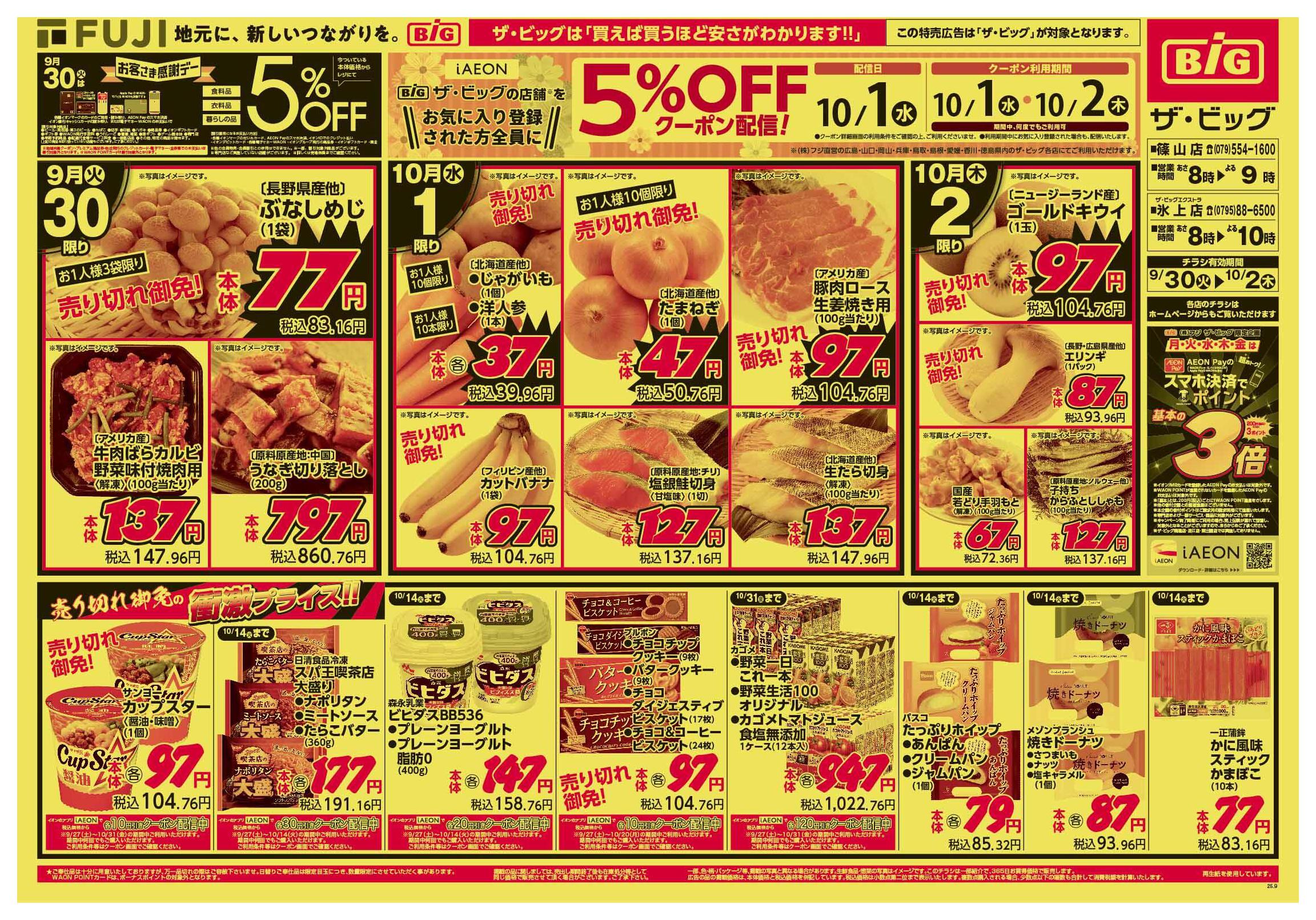 ザ・ビッグエクストラ氷上店今週のチラシ(2025年9月29日〜10月5日)