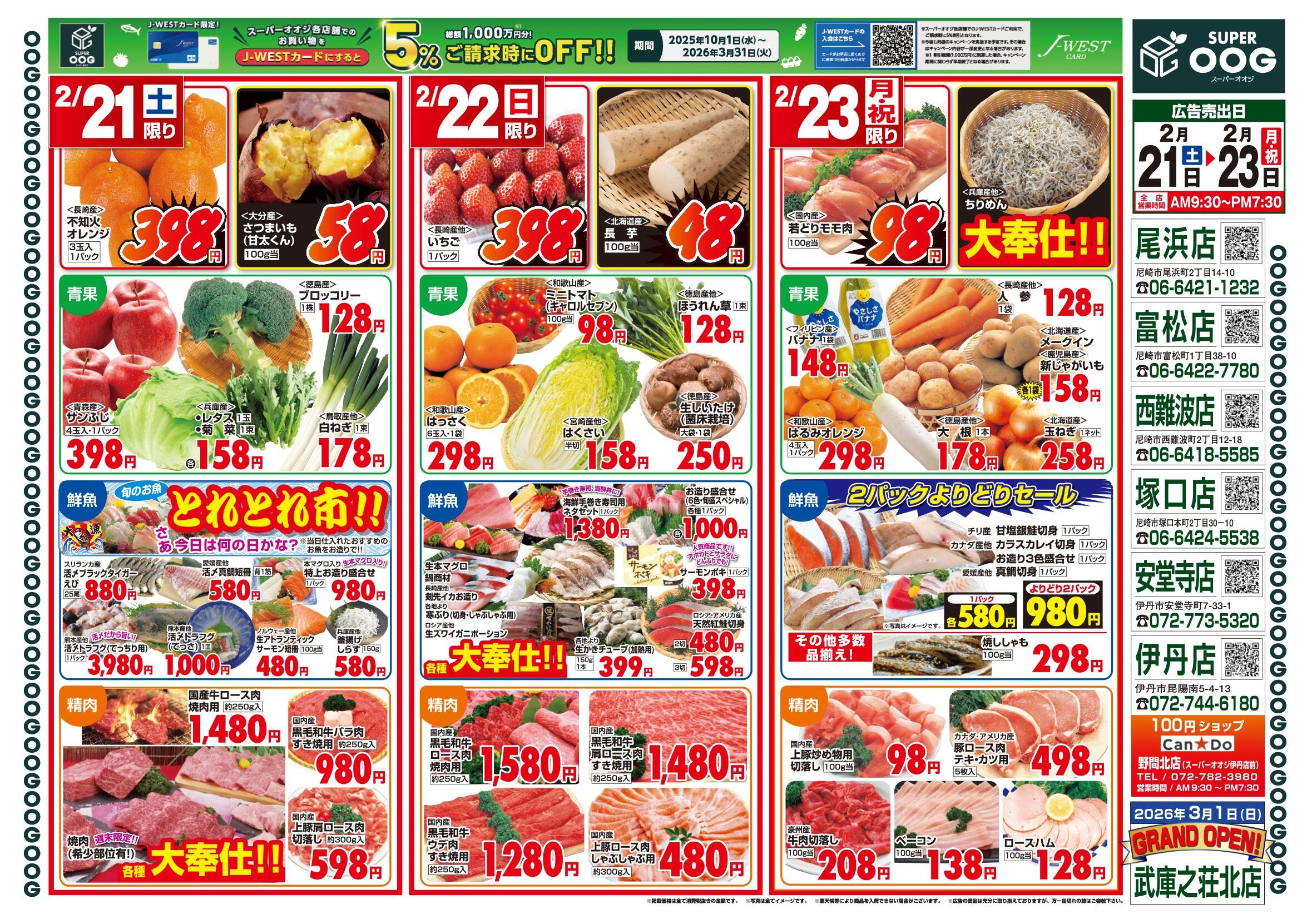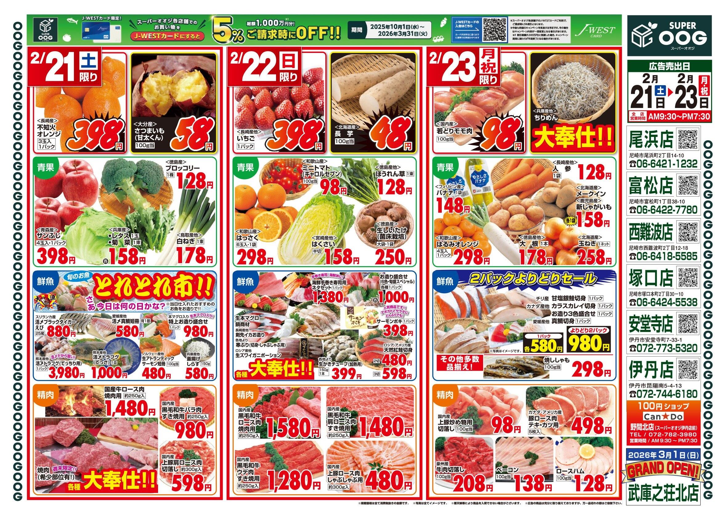 スーパーオオジ 伊丹安堂寺店今週のチラシ(2026年2月23日〜3月1日)