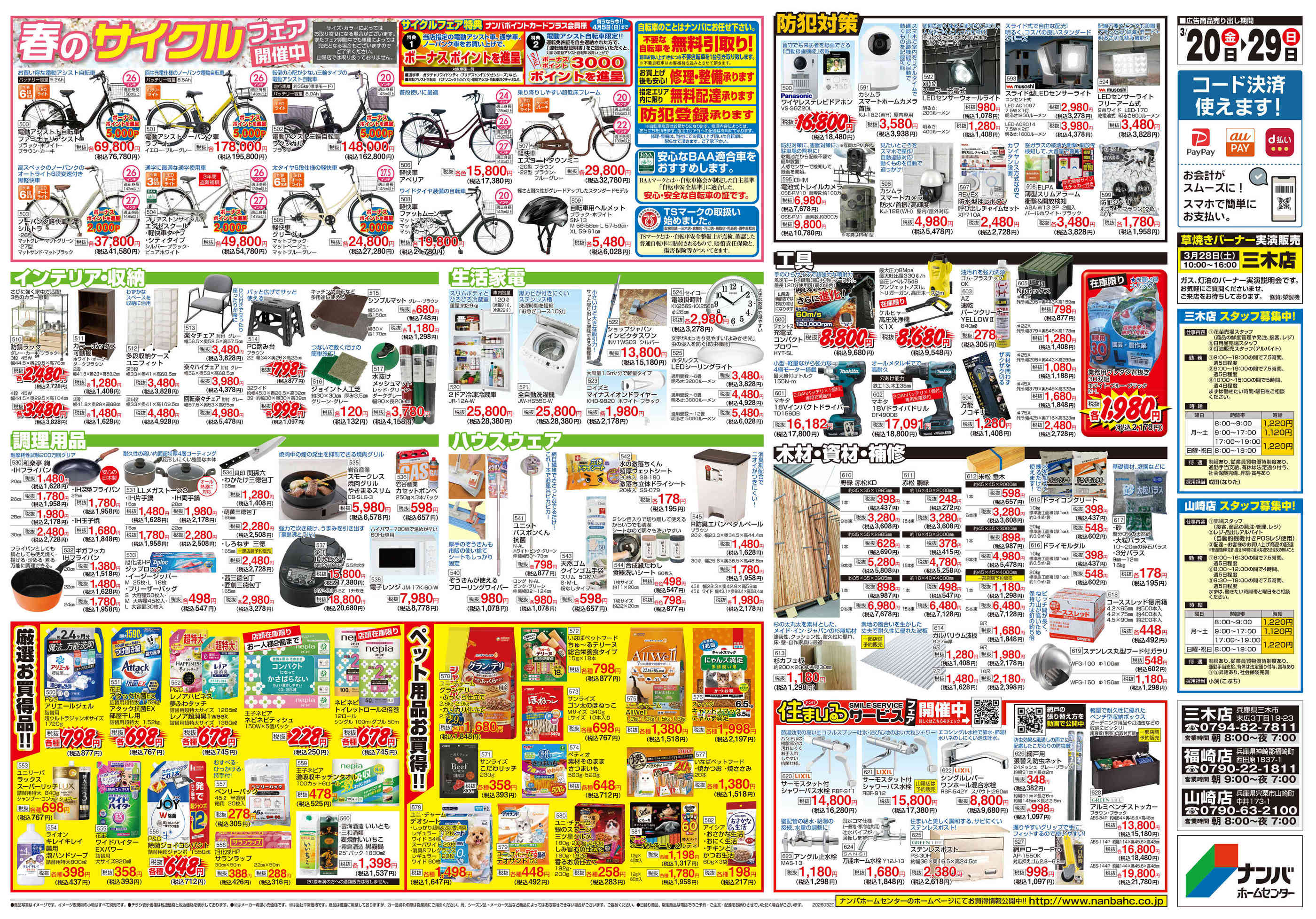 ナンバホームセンター山崎店今週のチラシ(2026年3月23日〜3月29日)