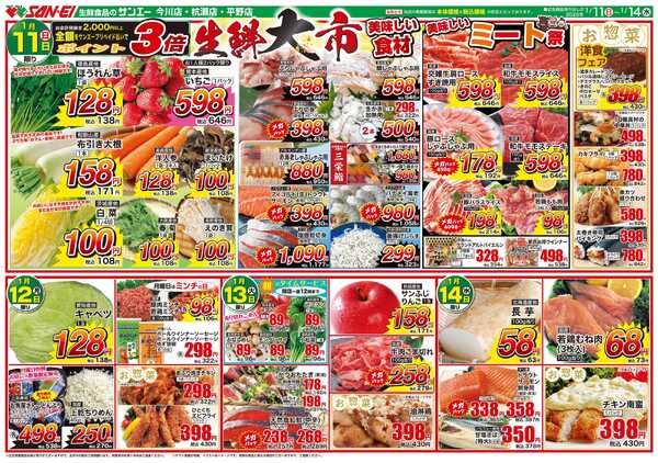 特売やセール情報など最新のチラシを掲載中。(3種類、4枚のチラシを掲載しています)