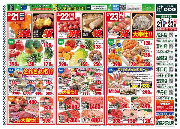 特売やセール情報など最新のチラシを掲載中。(2種類、3枚のチラシを掲載しています)