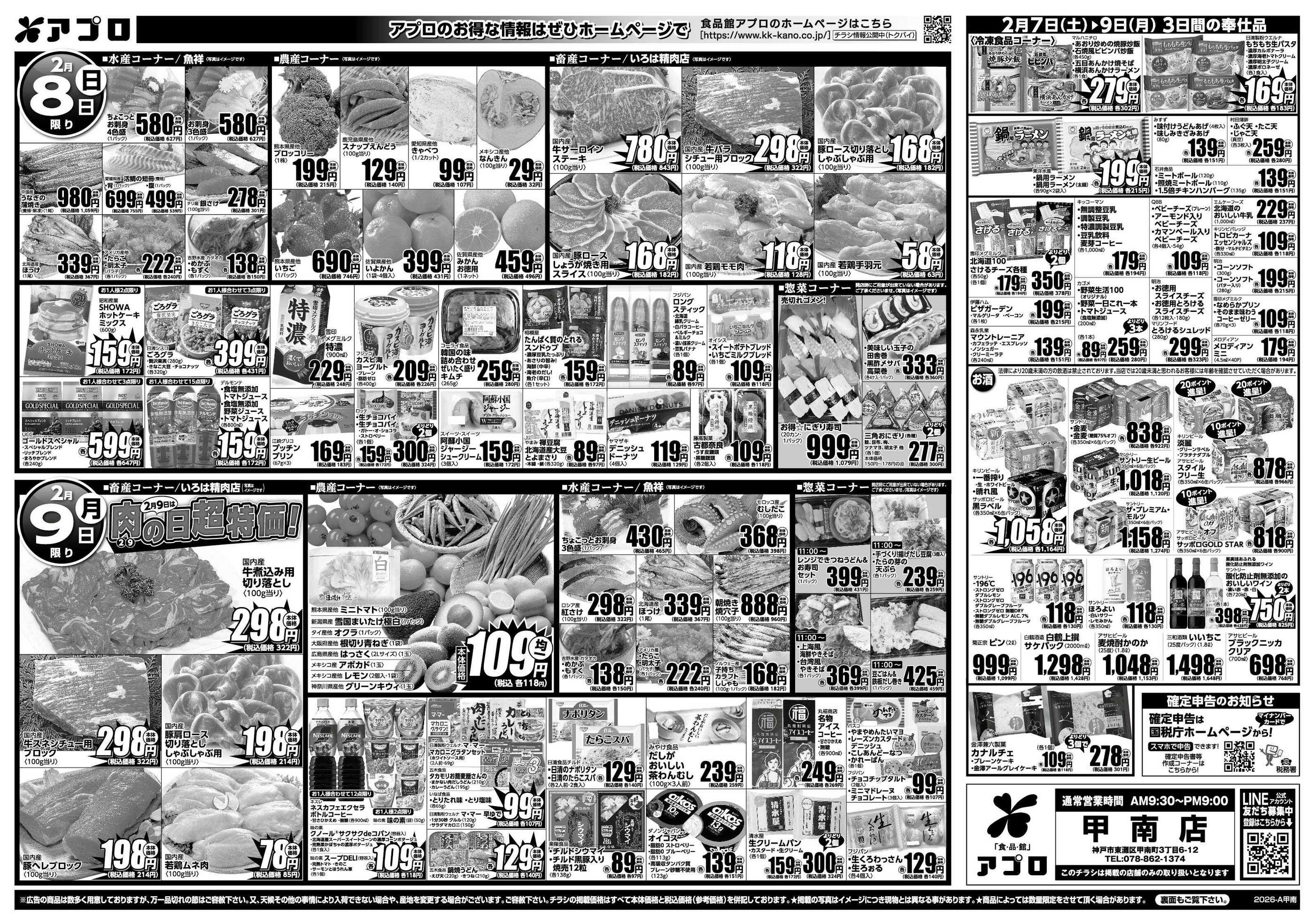 食品館アプロ甲南店今週のチラシ(2026年2月9日〜2月15日)